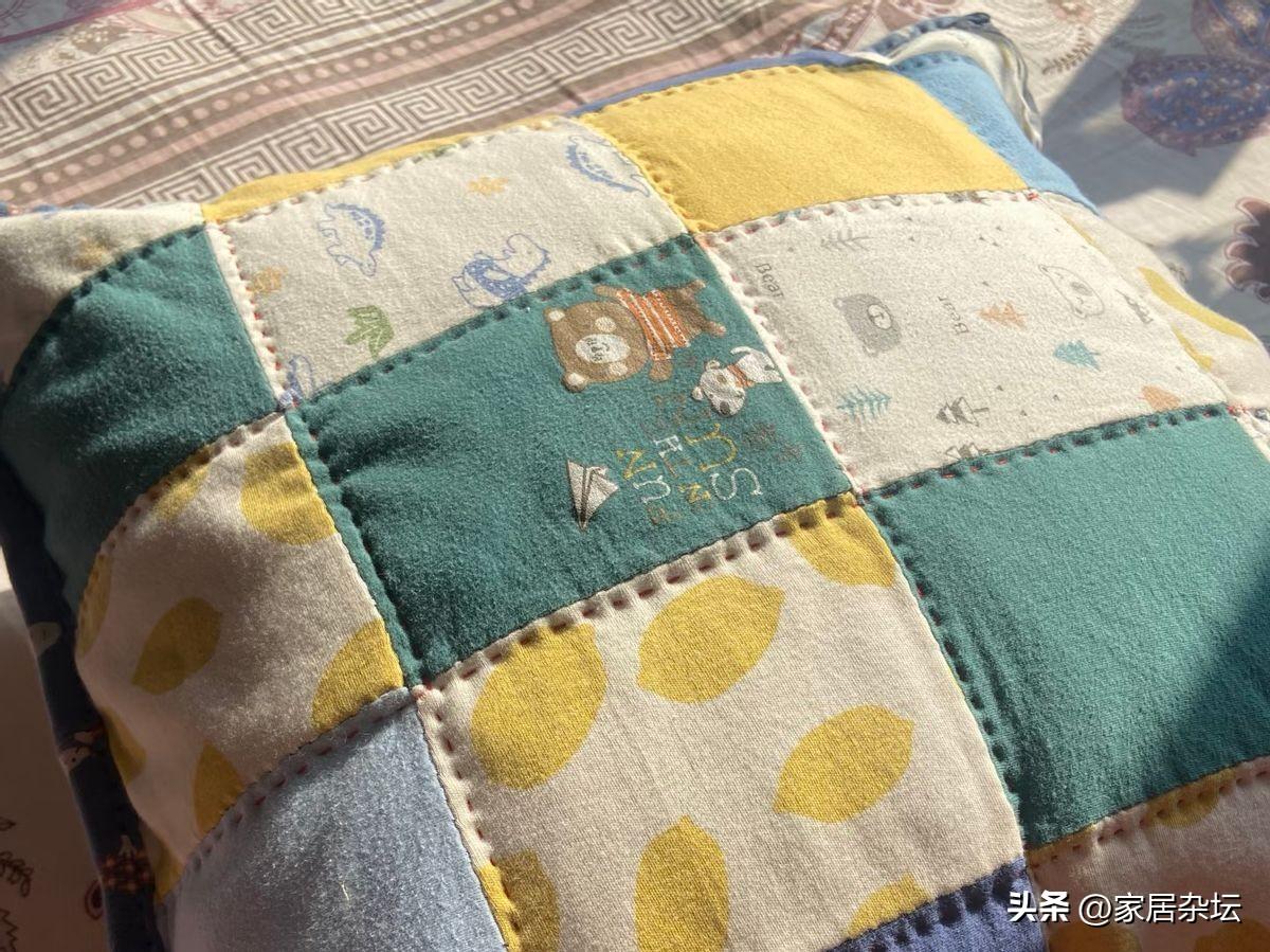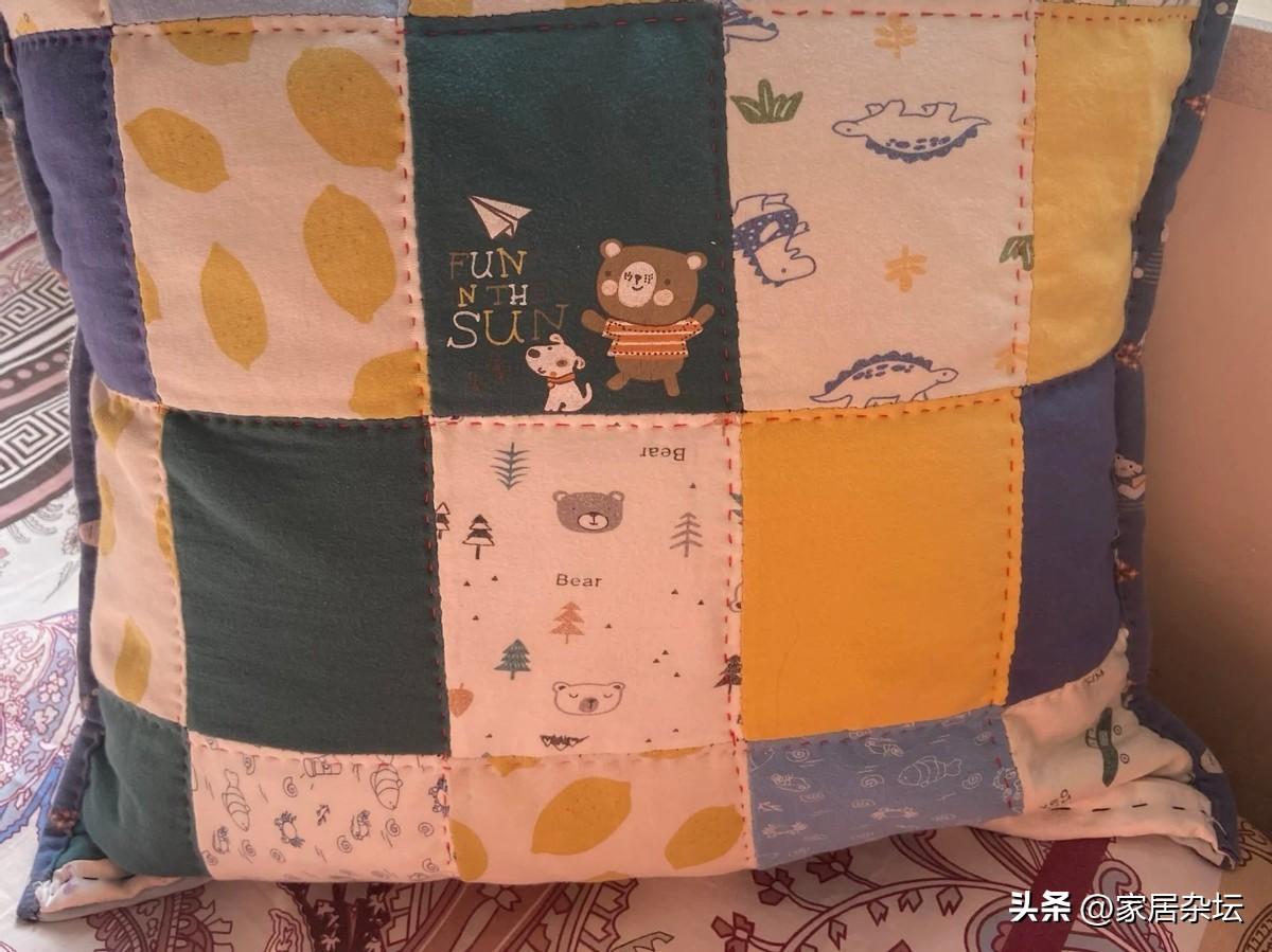 我發現這種做法太有創意了,成本幾乎爲零,而且每一塊布料都承載着一段記憶。這個抱枕套都是孤品,都是買不到的,而且能爲客廳又或者臥室增添個人色彩。