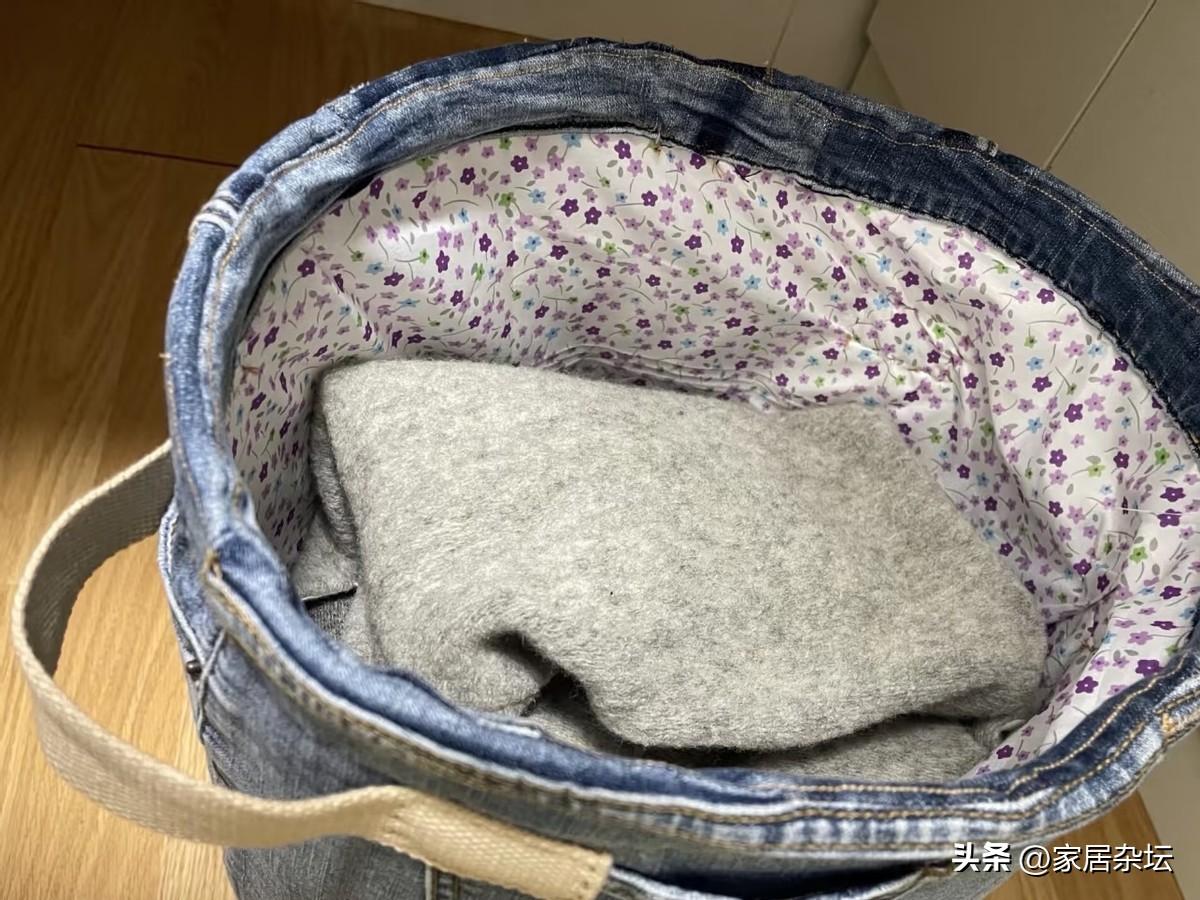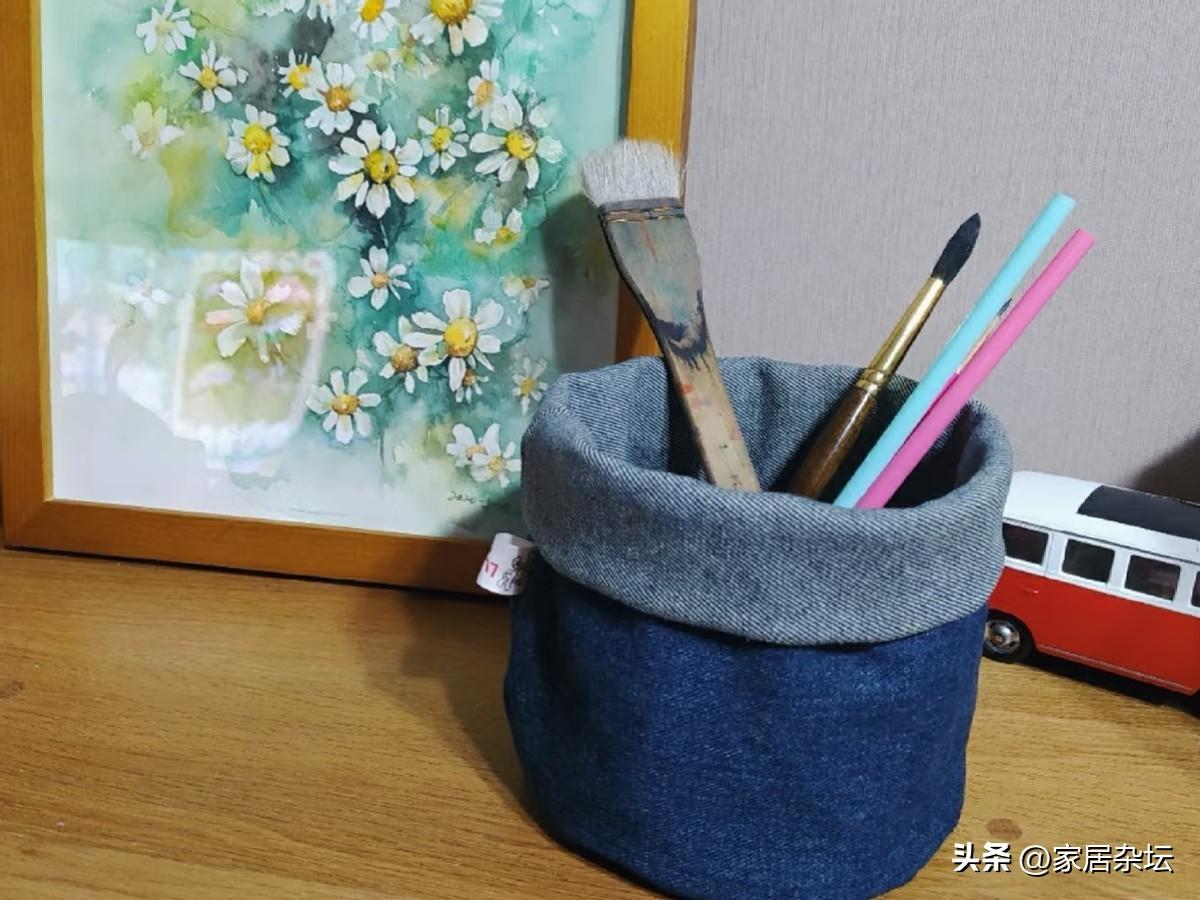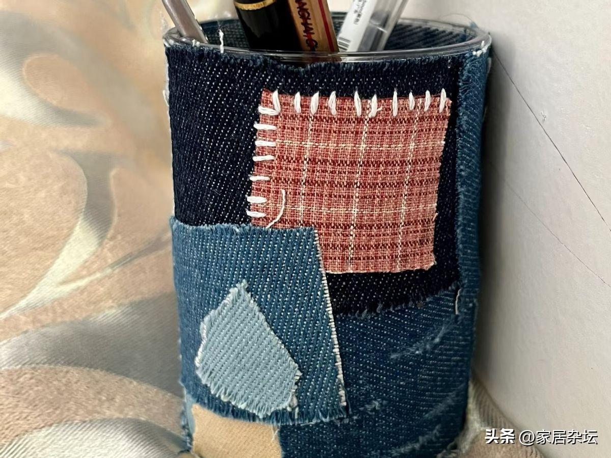 就是將就舊的牛仔褲或者是厚一些的帆布褲的褲腿剪下來,然後可以根據我們要求的高度,例如抽屜的高度,剪成一段一段的圓筒裝。如果會手工的話,可以將兩邊再做個封邊。