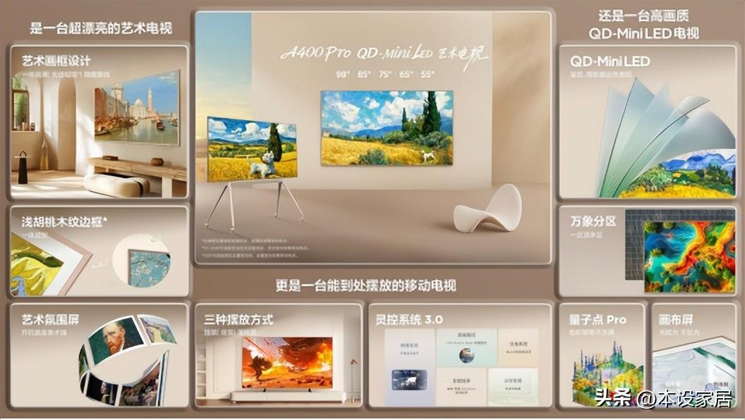 問題來了,難道美感與性能真的無法兼得?當然不是,這不,TCL前段時間用全新上市的QD-Mini LED藝術電視A400 Pro給出了鏗鏘有力的回答:真正“好看”的藝術電視,從不該以犧牲畫質爲代價。