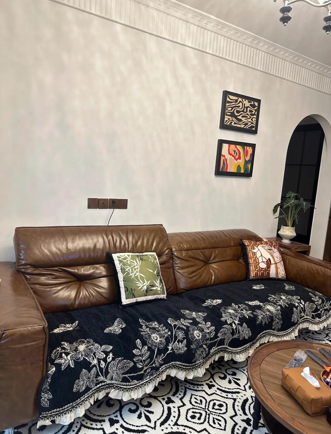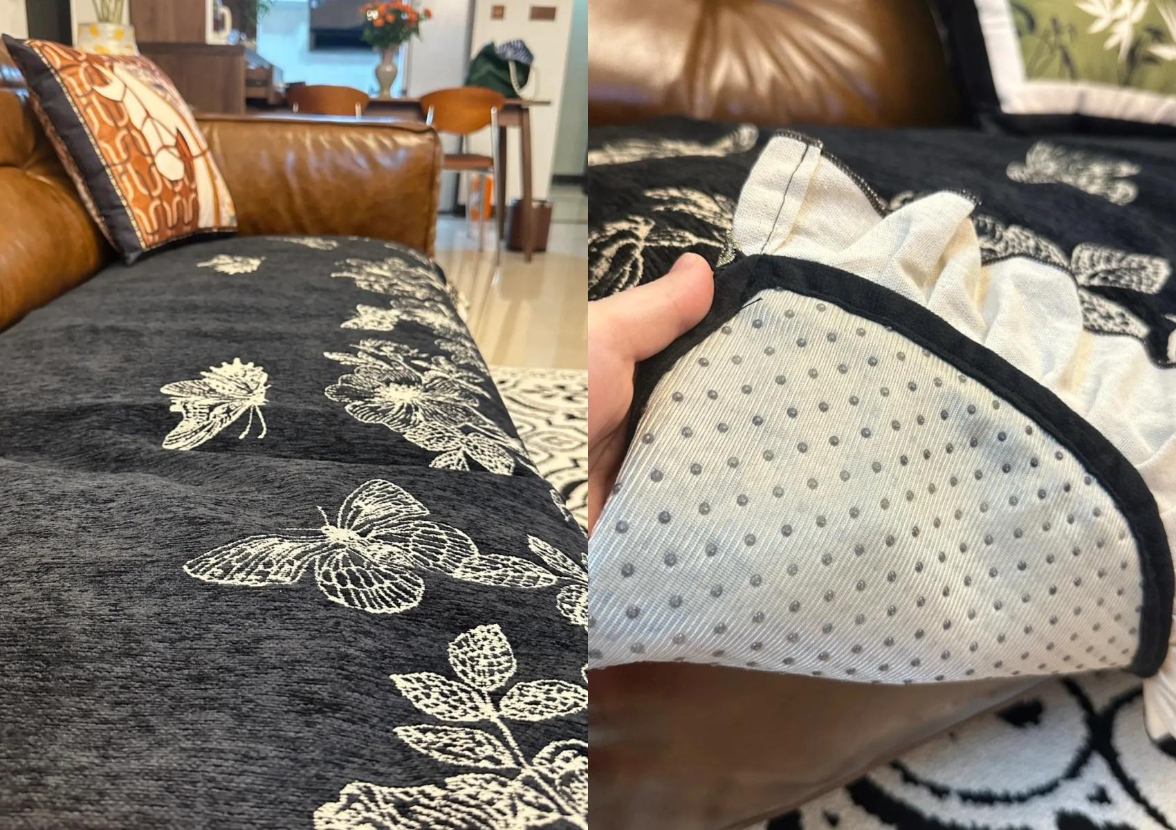 質感和皮沙發尤其配!背面還帶了防滑顆粒,就不容易從皮面上滑下來,不用反覆整理,也是幸福的一部分。