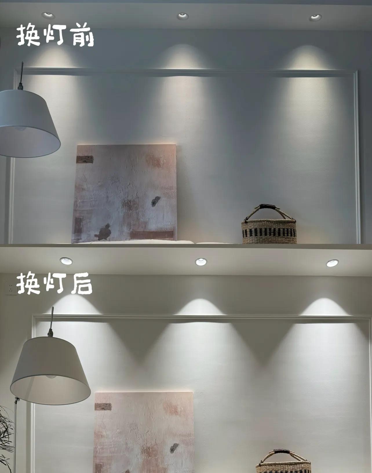 換燈後,整個家都像被喚醒了一樣,亮堂、清透,回到家打開燈,那叫一個幸福。