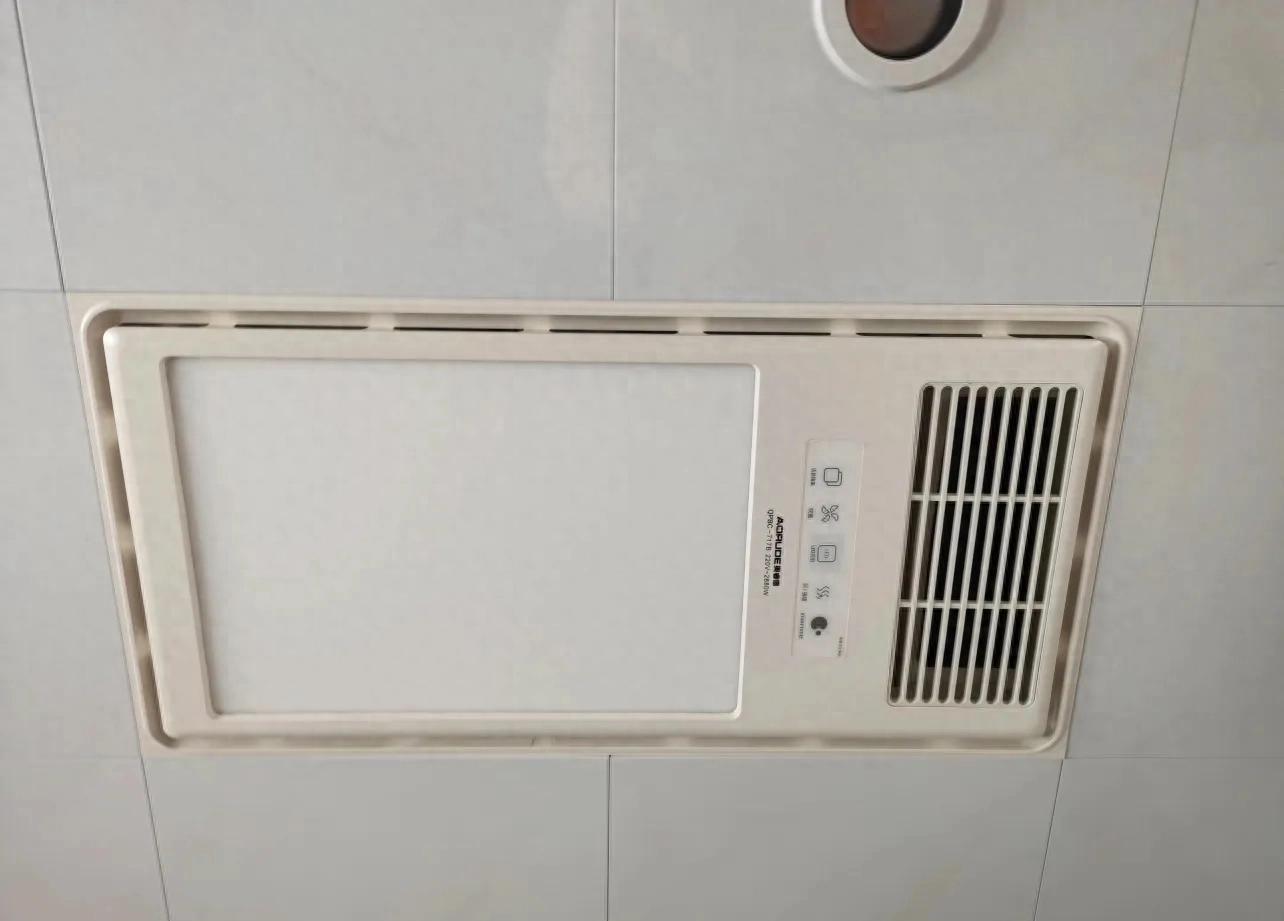 移位的事,不用大動干戈,很簡單,只需要打開兩塊鋁扣板,把暖風機挪到靠近門口的方向,就搞定了。