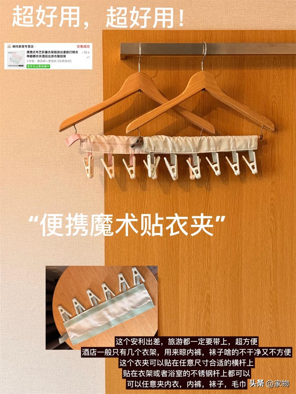 但有了這種魔術貼式的晾衣夾,就能一次擴展出更多的晾衣空間,晾曬內衣襪子或者普通的小件T恤都OK。