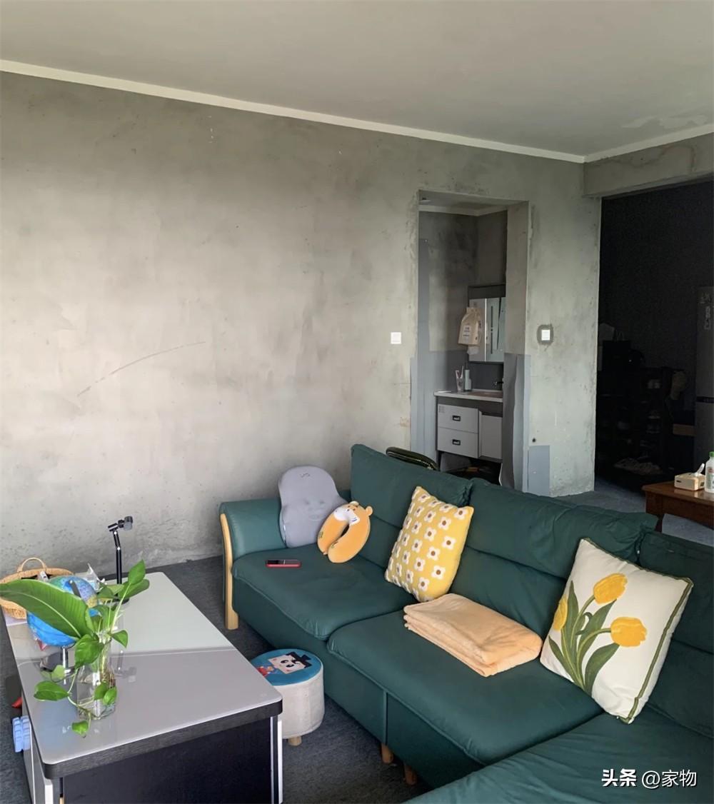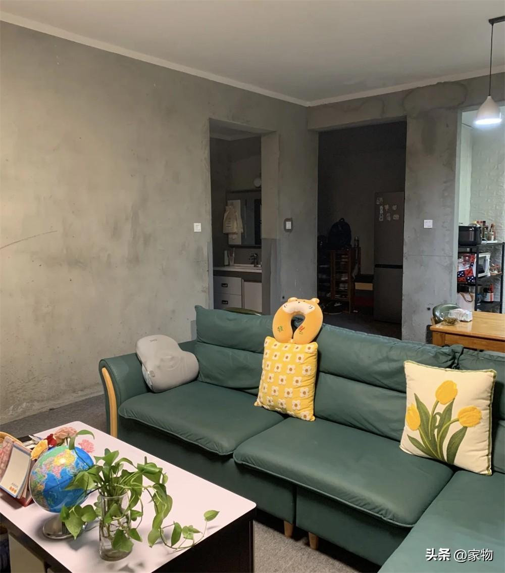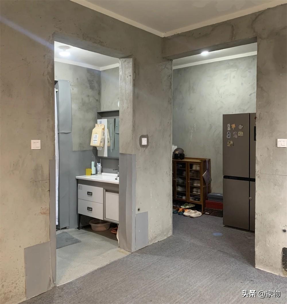 最近,我就發現了一對四川夫妻(@斯室陋室)的家,完全保留了毛坯房的狀態,屋內兩室一廳還是橫廳戶型,兩人入住3年時間,也只置辦了基礎傢俱,其餘空間都未做裝修,連牆都沒刷。