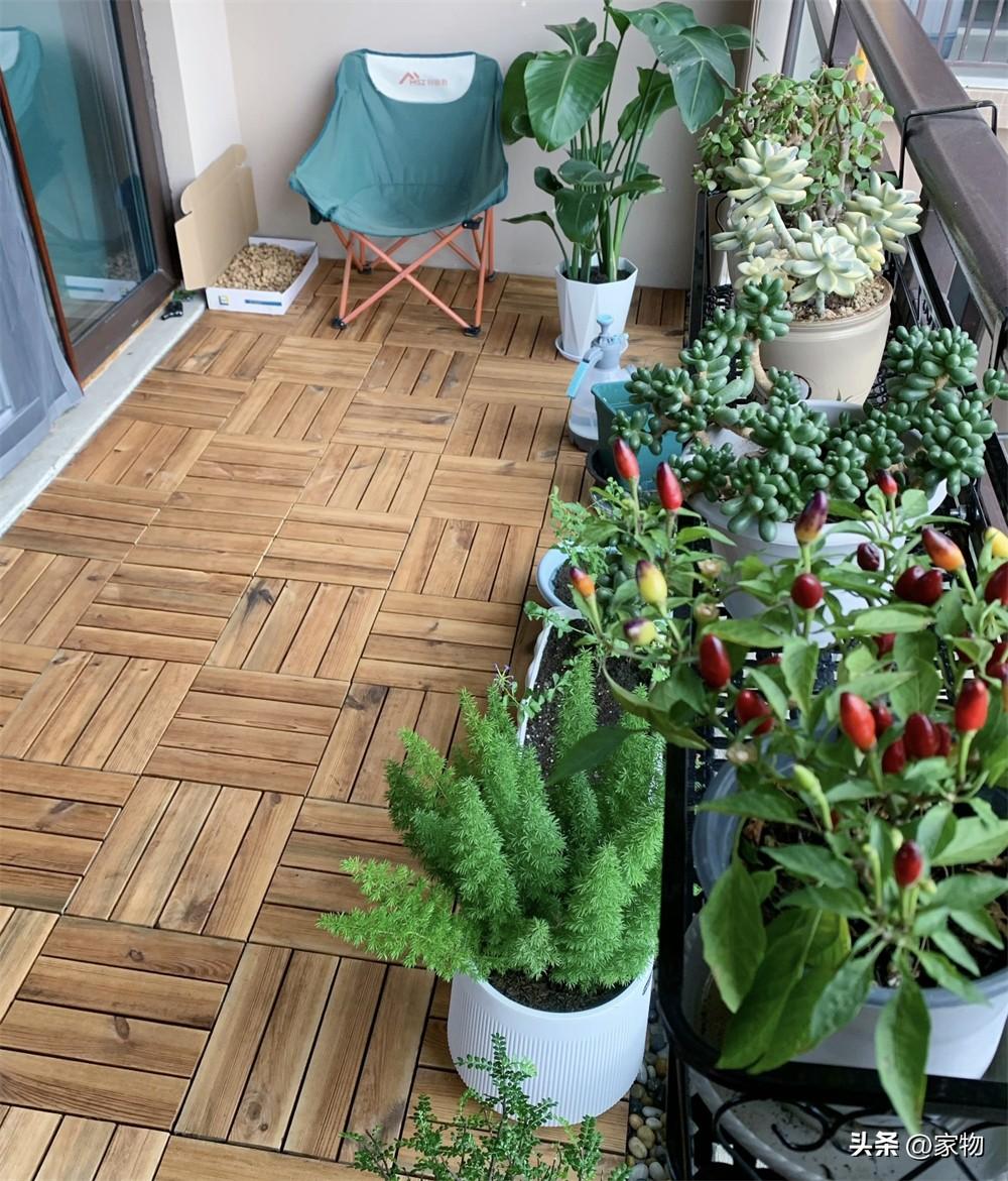 現在的陽臺,直接鋪上防水戶外木地板,再放上幾組花架,在這裏養花種草別提多合適了,更不用說,這開放式的陽臺在一定程度上也釋放了毛坯房昏暗的氛圍感,爲家居空間增添了幾分生機與活力。