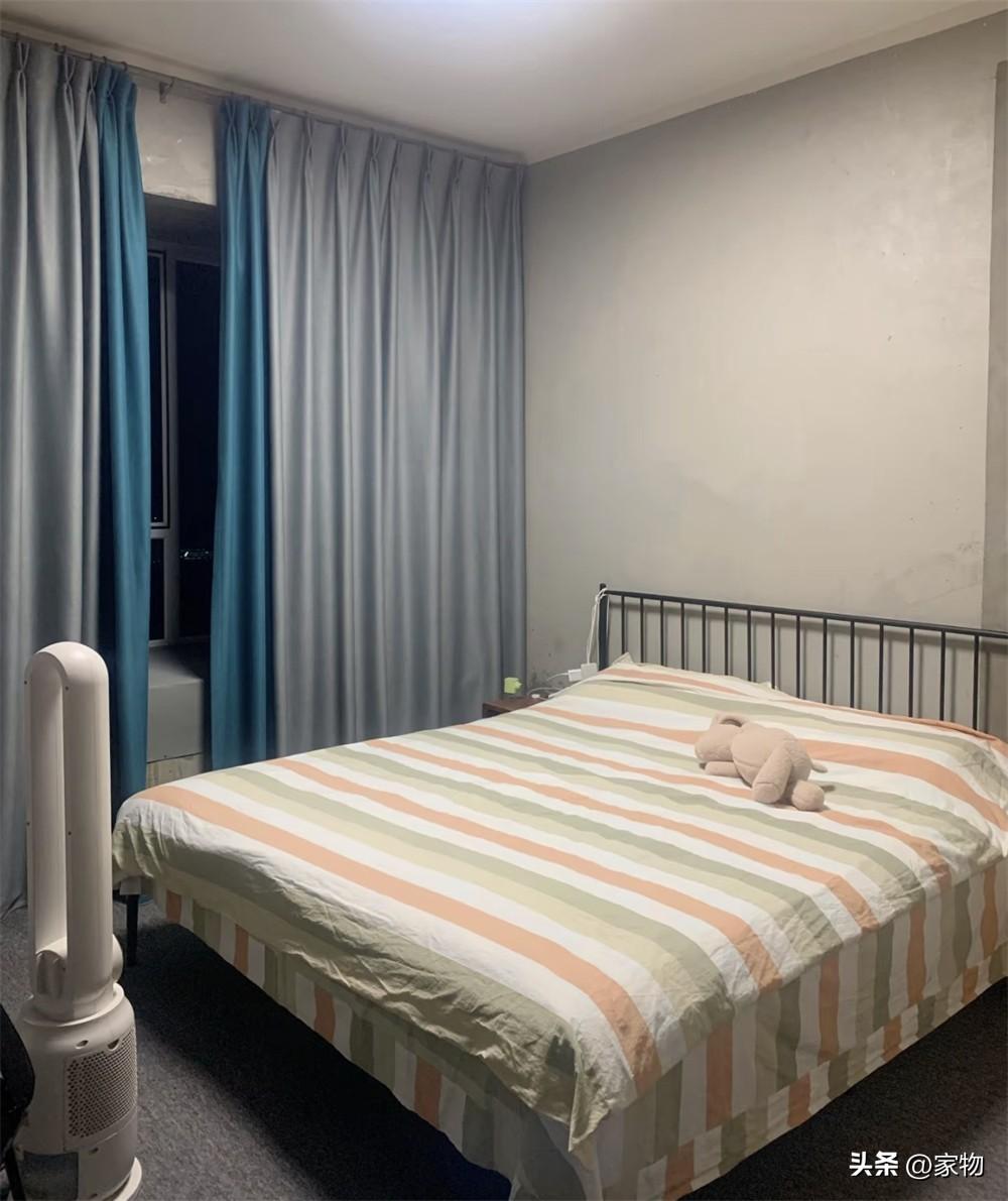 先說主臥室,大部分空間都留給了一張1米8的大牀,且特意選了一張遮光窗簾,週末想要睡個懶覺,不用擔心陽光侵擾。
