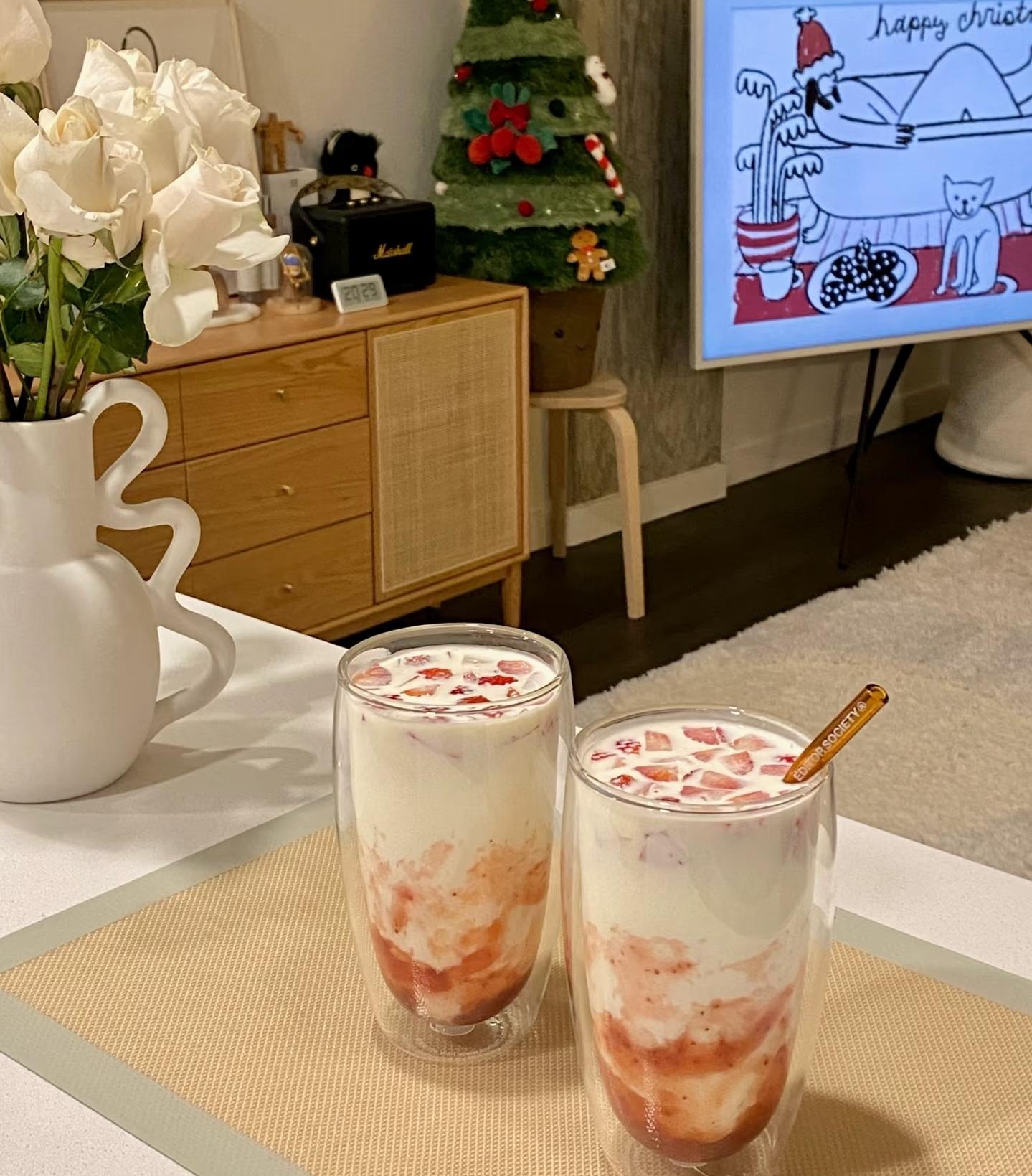 這杯好適合週五的晚上、聖誕節、新年的儀式感,感覺喝了這個,一整個冬天都不想去奶茶店買草莓飲品了!