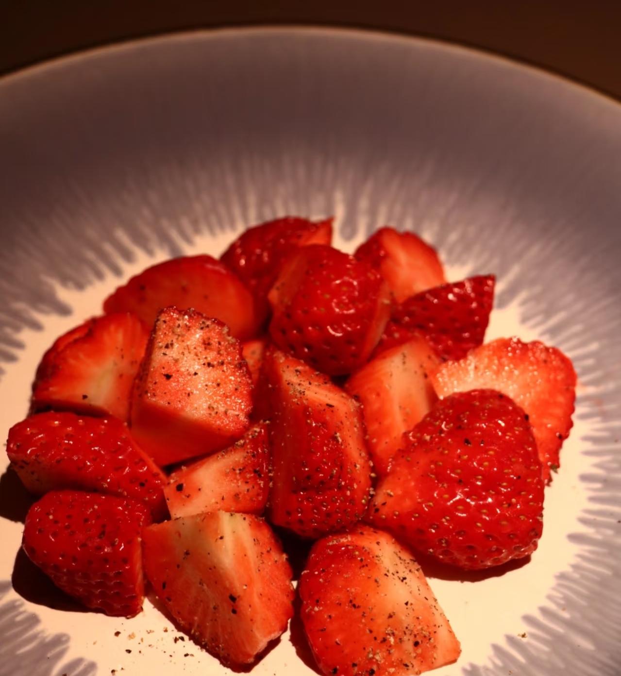草莓和檸檬汁的搭配,會有更輕盈的感覺,黑胡椒也只提供一點辛香,辣感沒那麼搖滾。