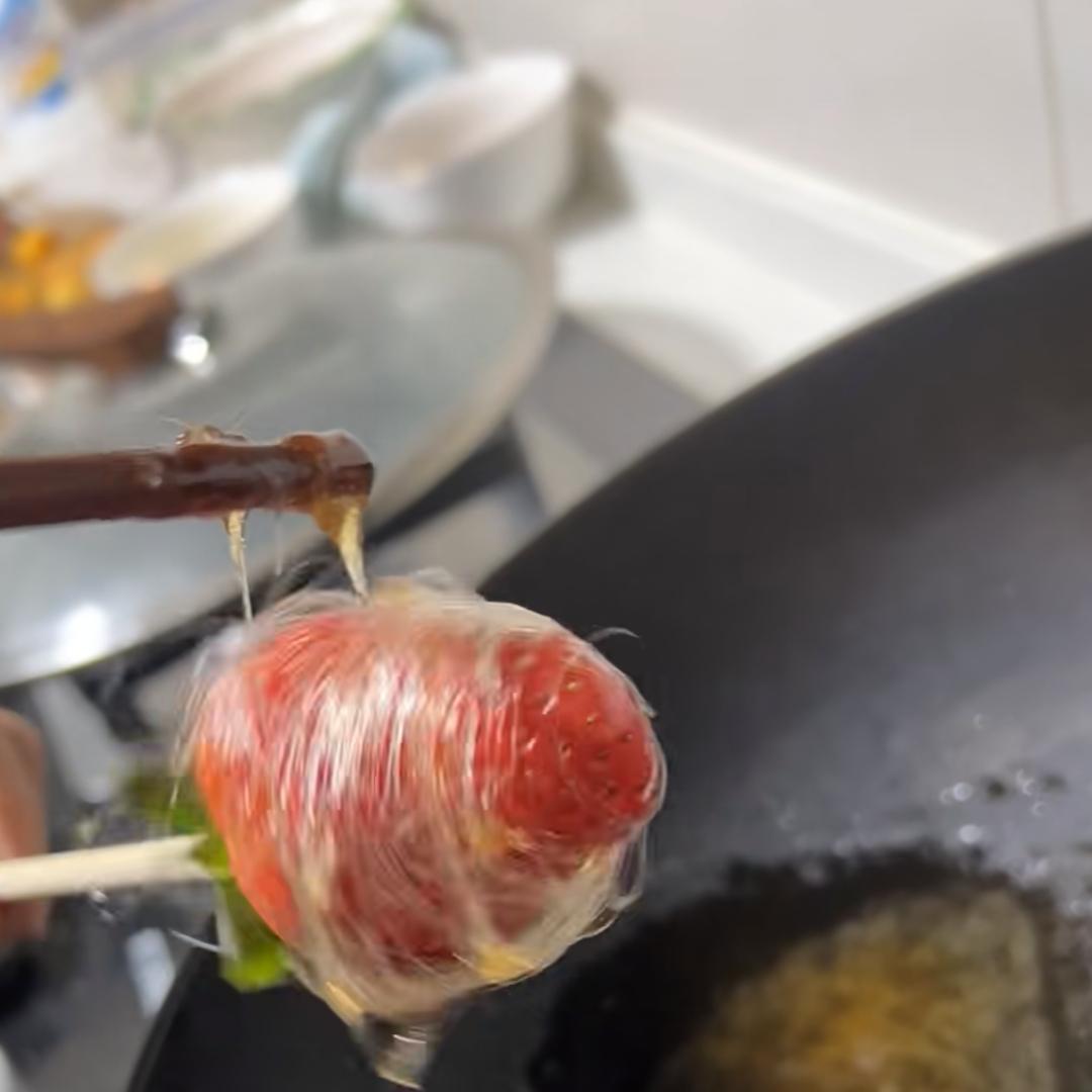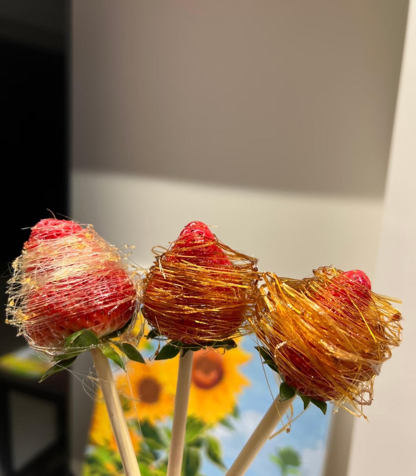 拔絲草莓,這波必須來幾個,即使絲斷了、很縹緲,也能叫“抽象藝術”。