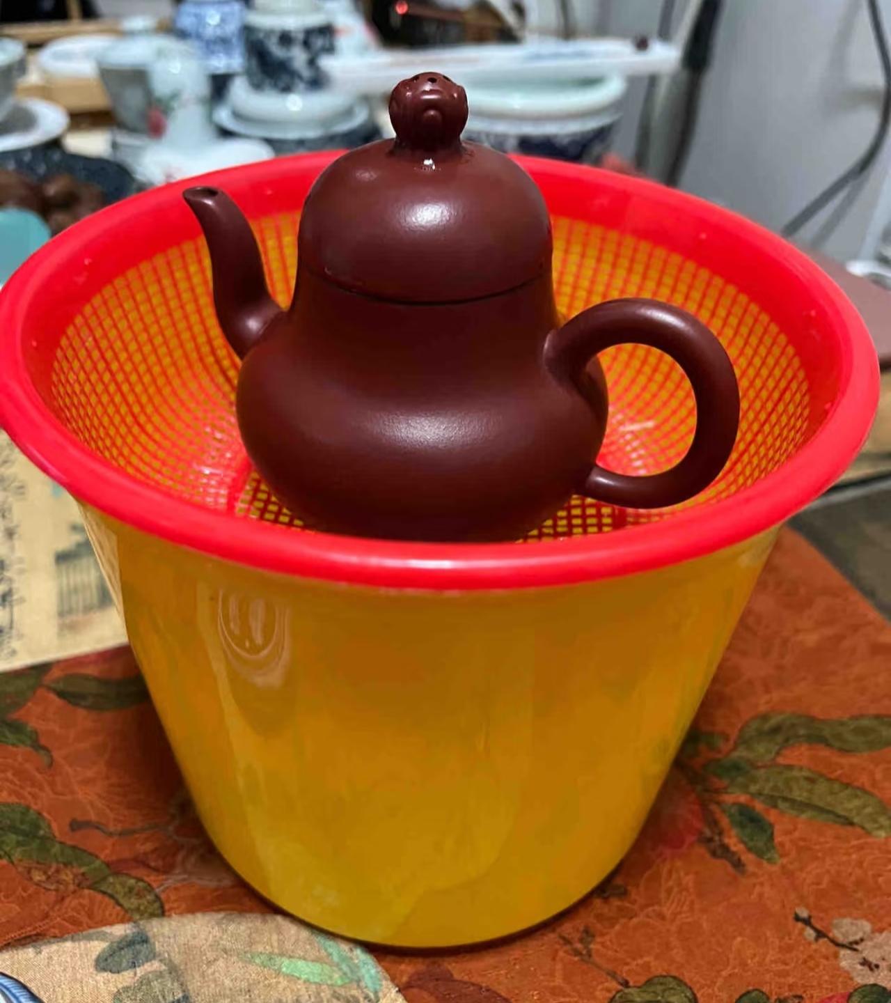 除了顏色扎眼,沒毛病,不但紫砂壺可以放上去淋壺,還能過濾茶渣,壺底的茶漬都省得墊了。完事後筐一扔,桶也好收拾。