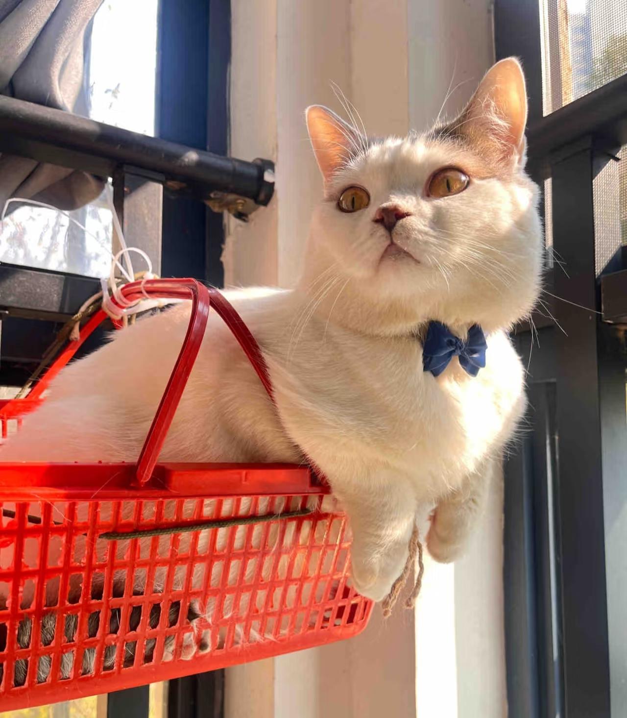 最後,噹噹——停貓位!這是電瓶車的車位停了一輛半掛啊,技術真好,看來是老師傅了。貓嘛,買的貓窩它不理,就喜歡這些玩意兒。