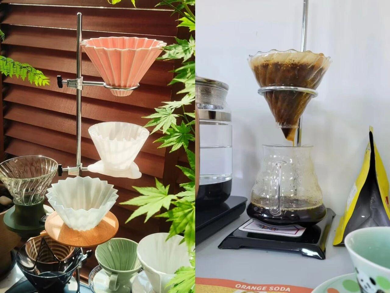 這實驗室架臺做個手衝支架剛剛好,我的各種咖啡濾杯也找到了家,別說還真合適。