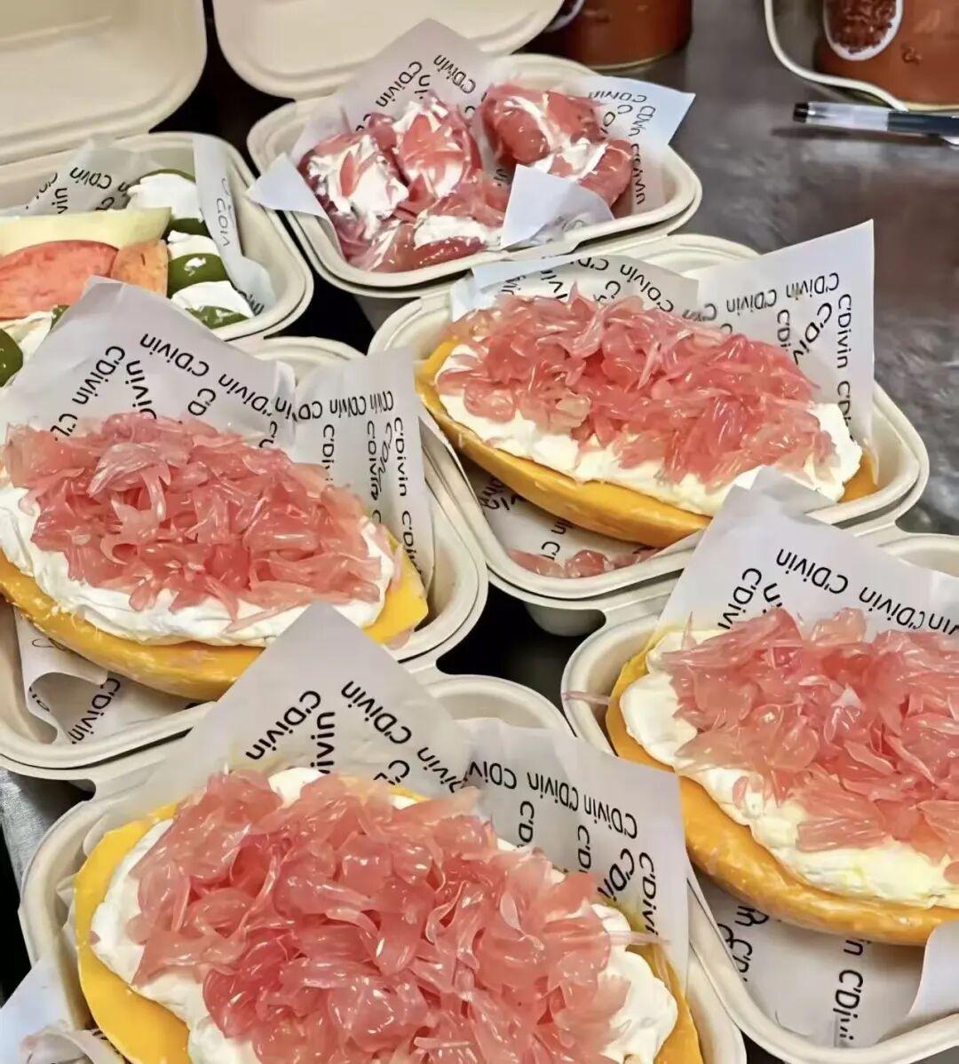 固體楊枝甘露主要是芒果+酸奶+柚子組成的。