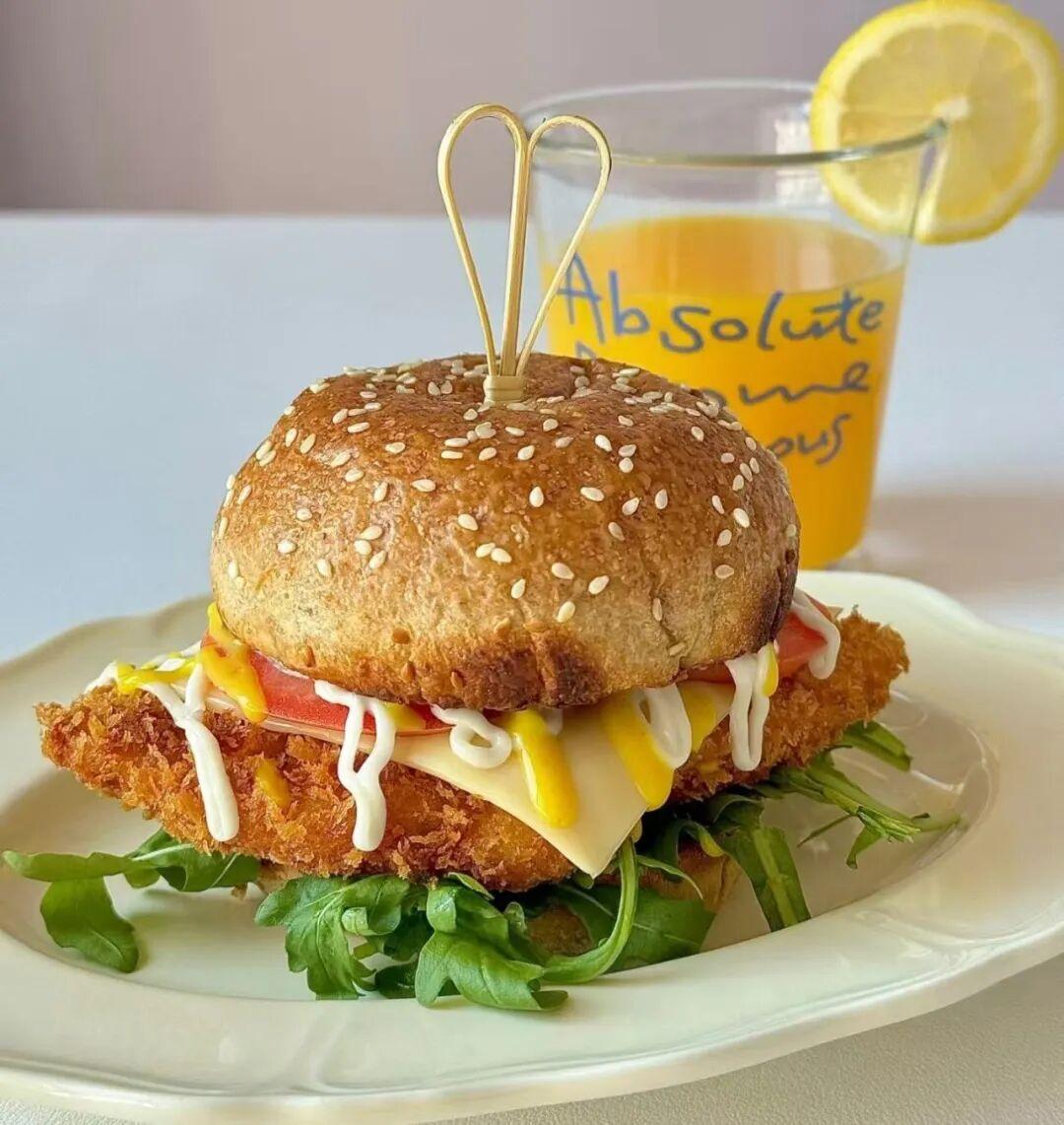 自由選擇全麥麪包、雙倍蔬菜和烤雞排,少放醬料,這樣一個漢堡不超過500大卡,就是完美的減脂餐!