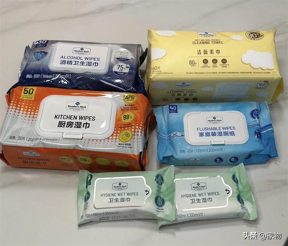 溼巾潔面巾這些東西,都是山姆家的“拿手好物”,我前前後後分別買過酒精衛生溼巾、廚房溼巾、溼廁紙、潔面柔巾,和小袋的衛生溼巾,可以說每一個都沒有踩坑,每一種溼巾的韌性和親膚感都不錯。