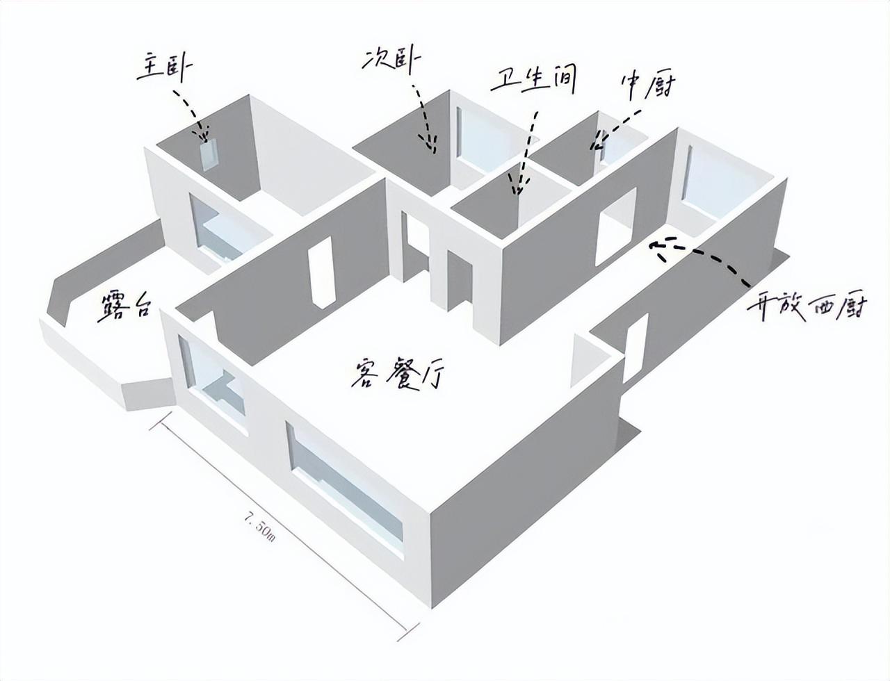 100平米小戶型,硬是砸掉一間臥室換來7.5米大橫廳,採光和空間感直接翻倍。