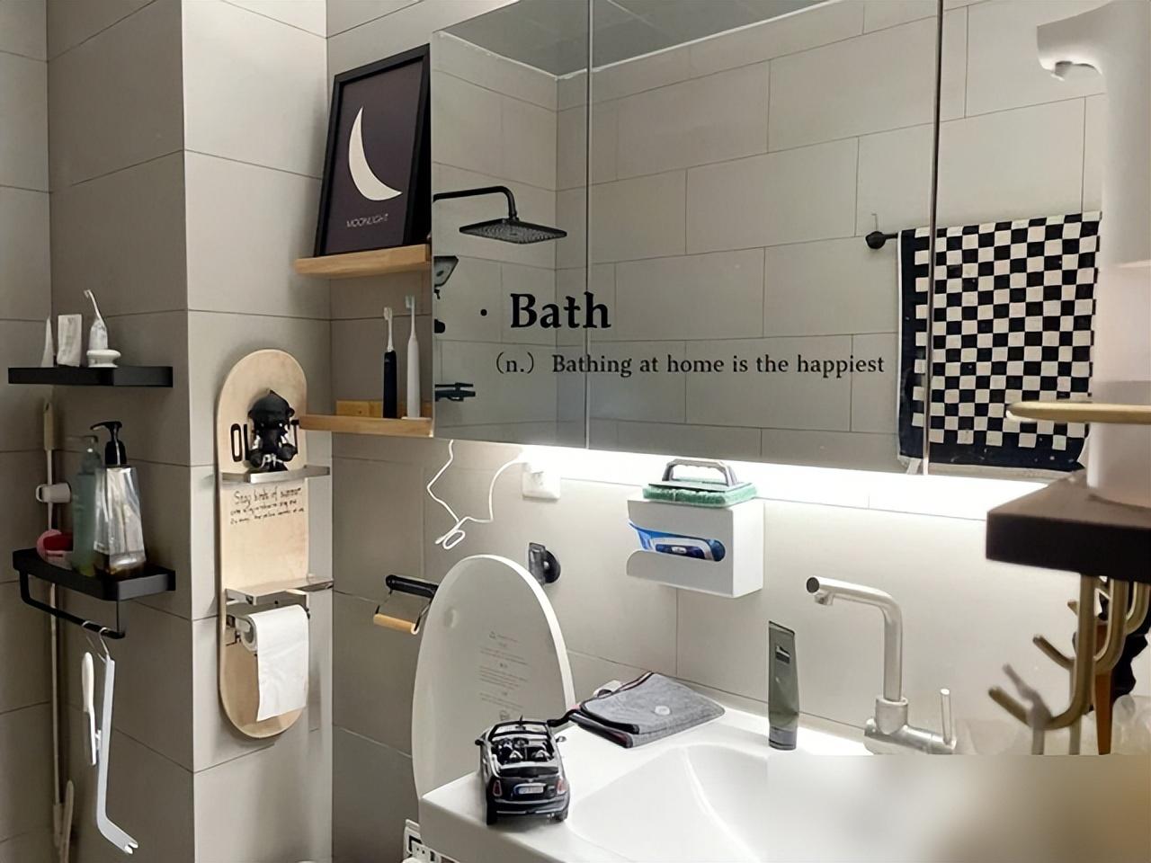 統一色調瓷磚配大鏡櫃,整潔感撲面而來。