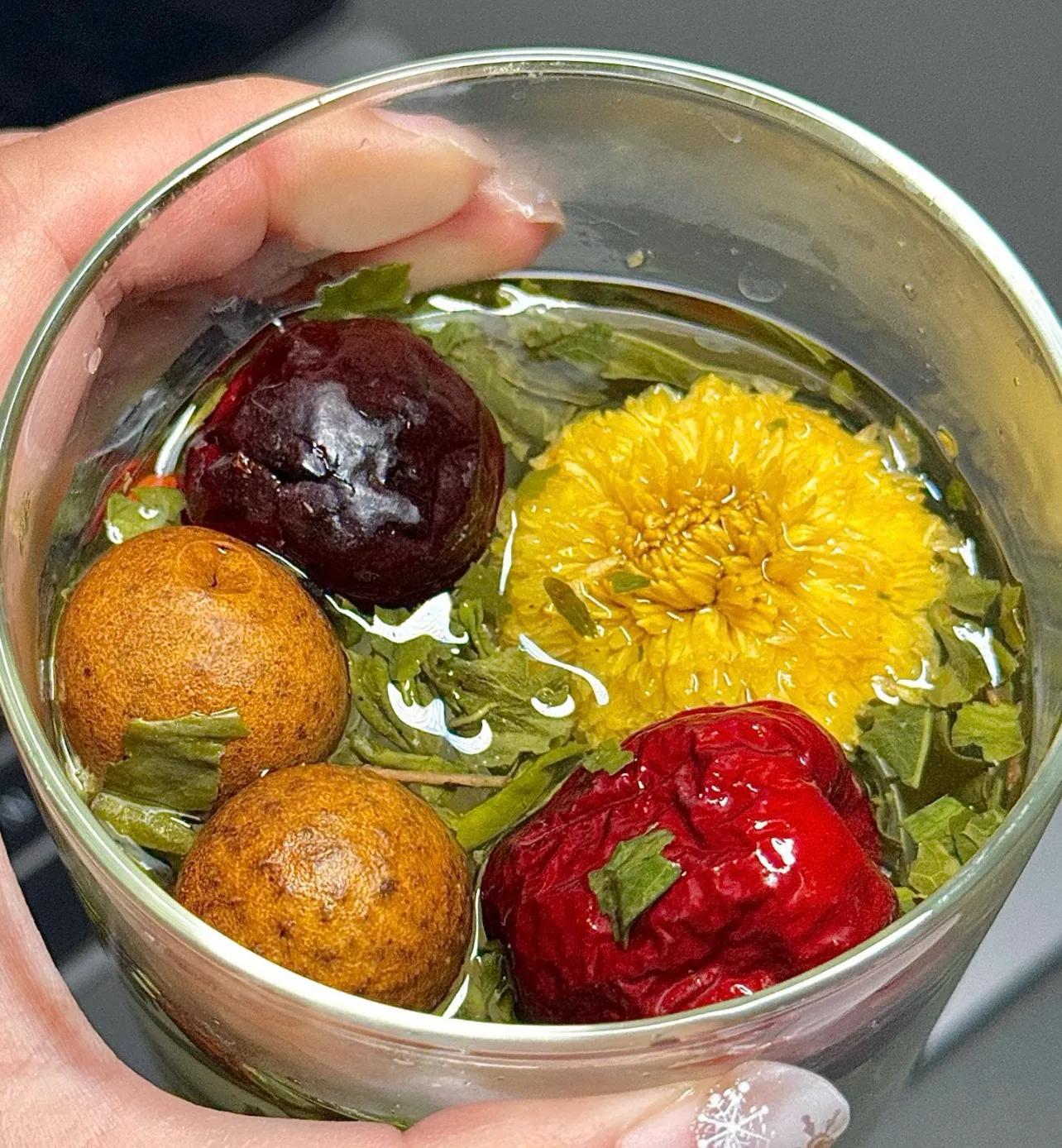 還貼心了加入了菊花,防止你上火,加入了茶葉,防止你喝桂圓之後,打瞌睡。