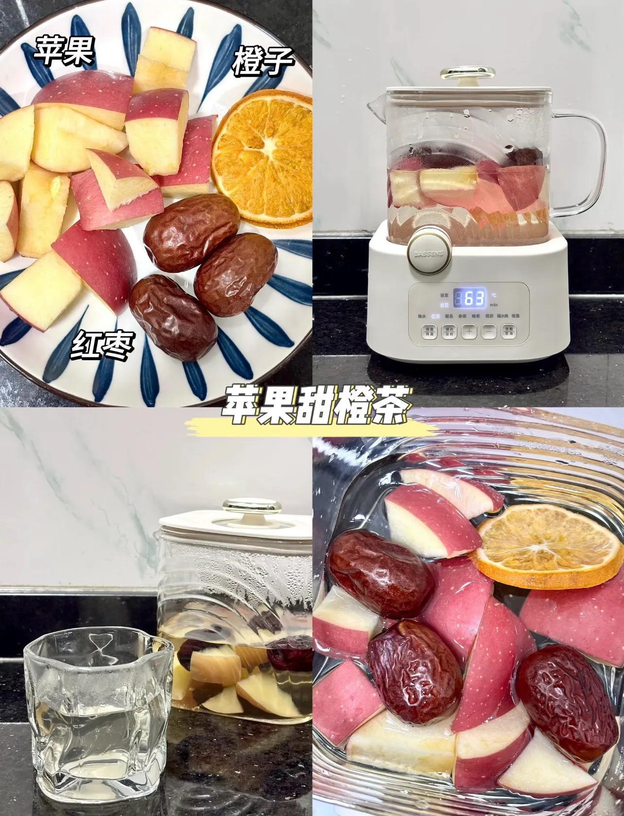 蘋果甜橙茶,紅棗含鐵,橙子含維c助吸收,且橙子裏還含有類黃酮,能起到補氣血,改善面色、減輕疲勞感的效果,至於蘋果嘛,主要是起到提升口感的作用。