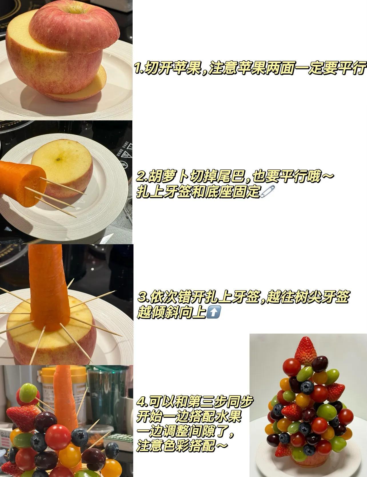 這棵聖誕樹=蘋果+草莓+胡蘿蔔+小番茄+葡萄+藍莓+車釐子,做法,就更簡單了。