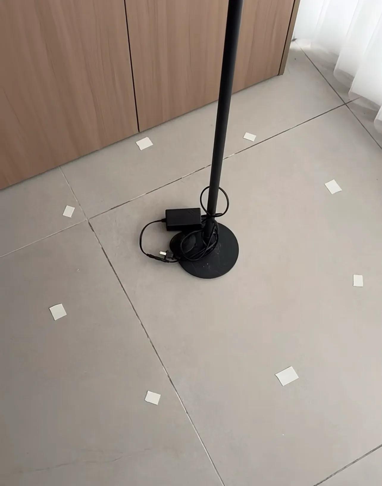 把每一條紙帶底部折一個小邊,貼在之前定點的45°雙面膠上,就能固定住了;
