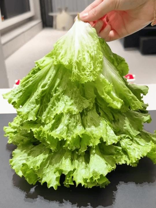 再把生菜從大到小,一片一片繞圈式插上去,瞬間就有樹形了。