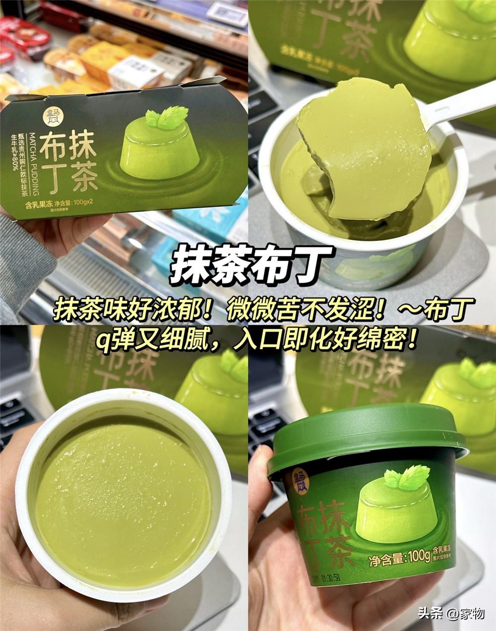 而盒馬的抹茶布丁,也算是經典中的經典了,我已經買過不下五次,口感綿密細膩,入口即化滿嘴抹茶味,真的絕了。