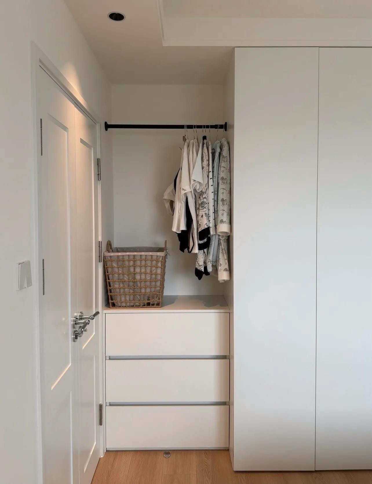 結果就是,櫃門只能開一半,如果不想每次拿衣服都得側着身子、練就一手精準盲掏的功夫,就至少要換掉一樣傢俱。