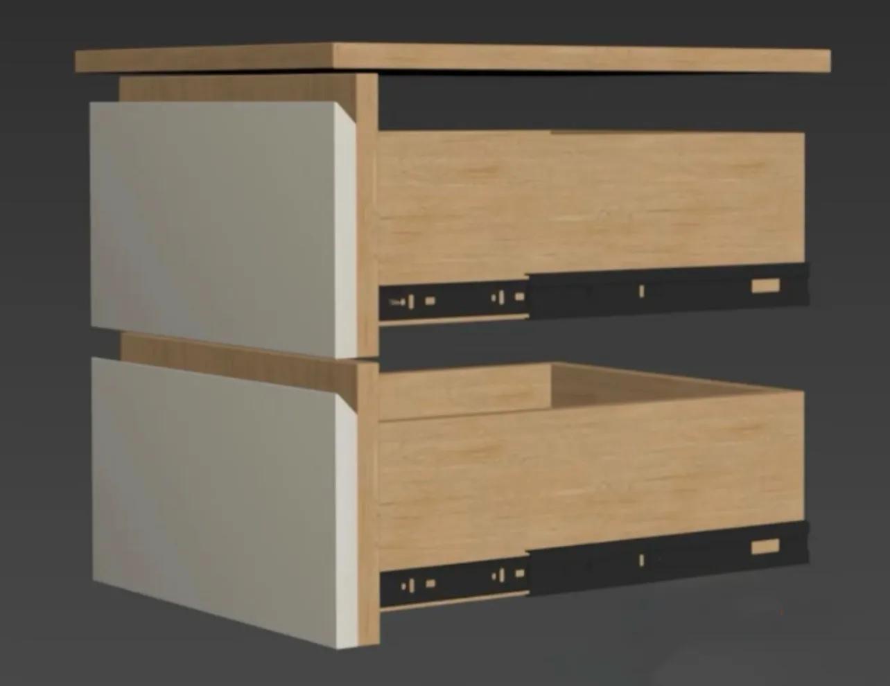 ①在裏面增加一條擋板,門扳外面切割出一個斜面,這樣,手指可以搭在這個斜面上,輕鬆把門拉開,由於拉手結構是做在門板上的,內部抽屜的高度就可以正常規劃,不受影響;
