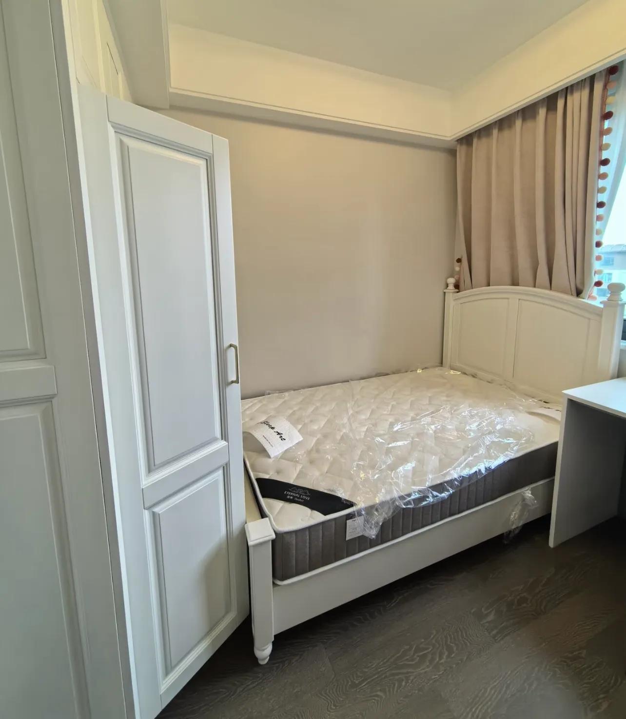 再比如,很多人只算了靜態尺寸,一體化書桌櫃、牀、衣櫃都安排的明明白白,卻忽略了動態尺寸——櫃門打開需要空間;