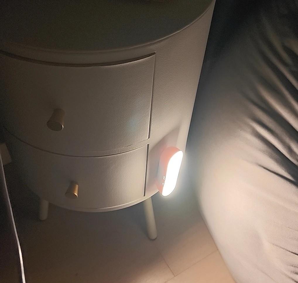 而且現在這種燈都是感應的,背面還是磁吸的,貼一個在牀邊,腳一落地自動亮起柔光。