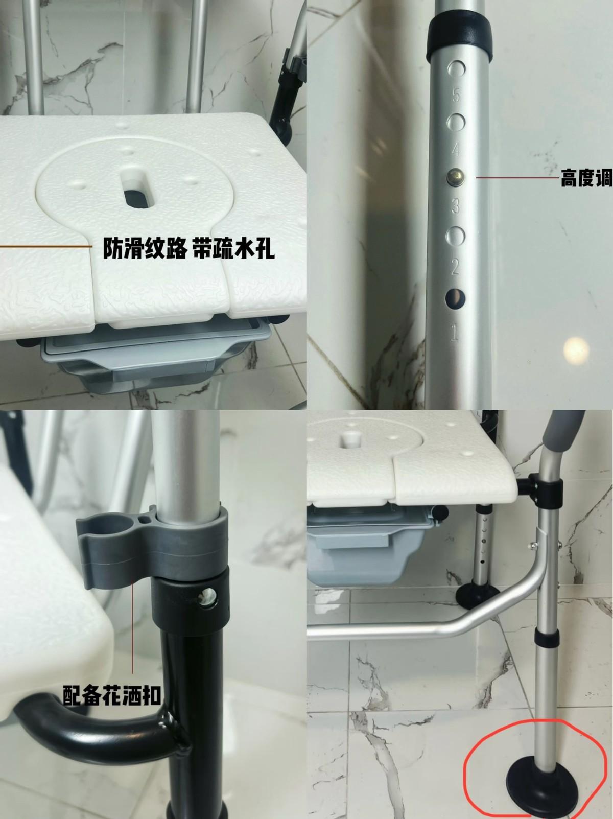 它四個強力吸盤抓地特穩,高度可以自由調節,扶手邊還有專門放沐浴露和花灑的卡槽,設計特別貼心。