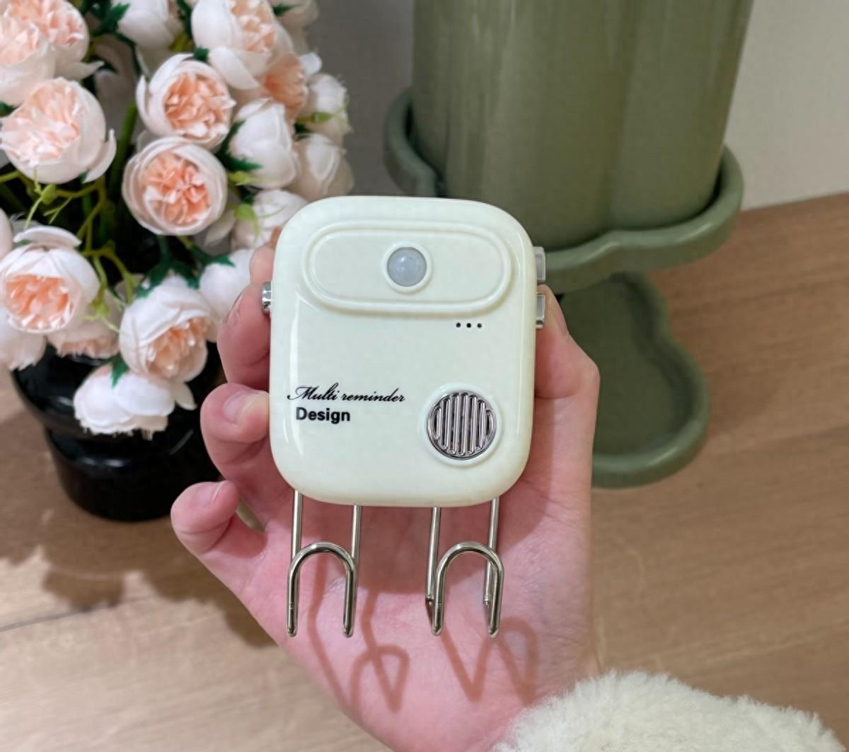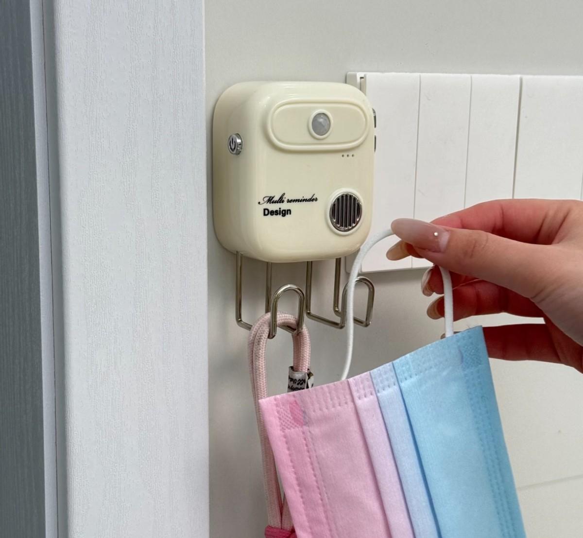這個小東西長得就像個迷你音箱,本來是貼在門上提醒健忘老人別忘帶鑰匙、關煤氣的。