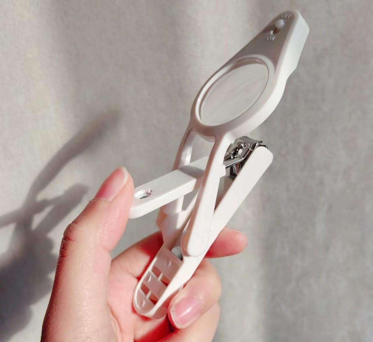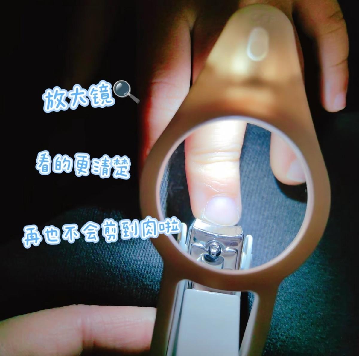 放大功能讓你看得清清楚楚,再也不用擔心剪到肉,特別是剪腳指甲時,不用再費力彎着腰湊近了看。 它還自帶柔光小夜燈,晚上剪指甲也不用特地爬起來開大燈了。