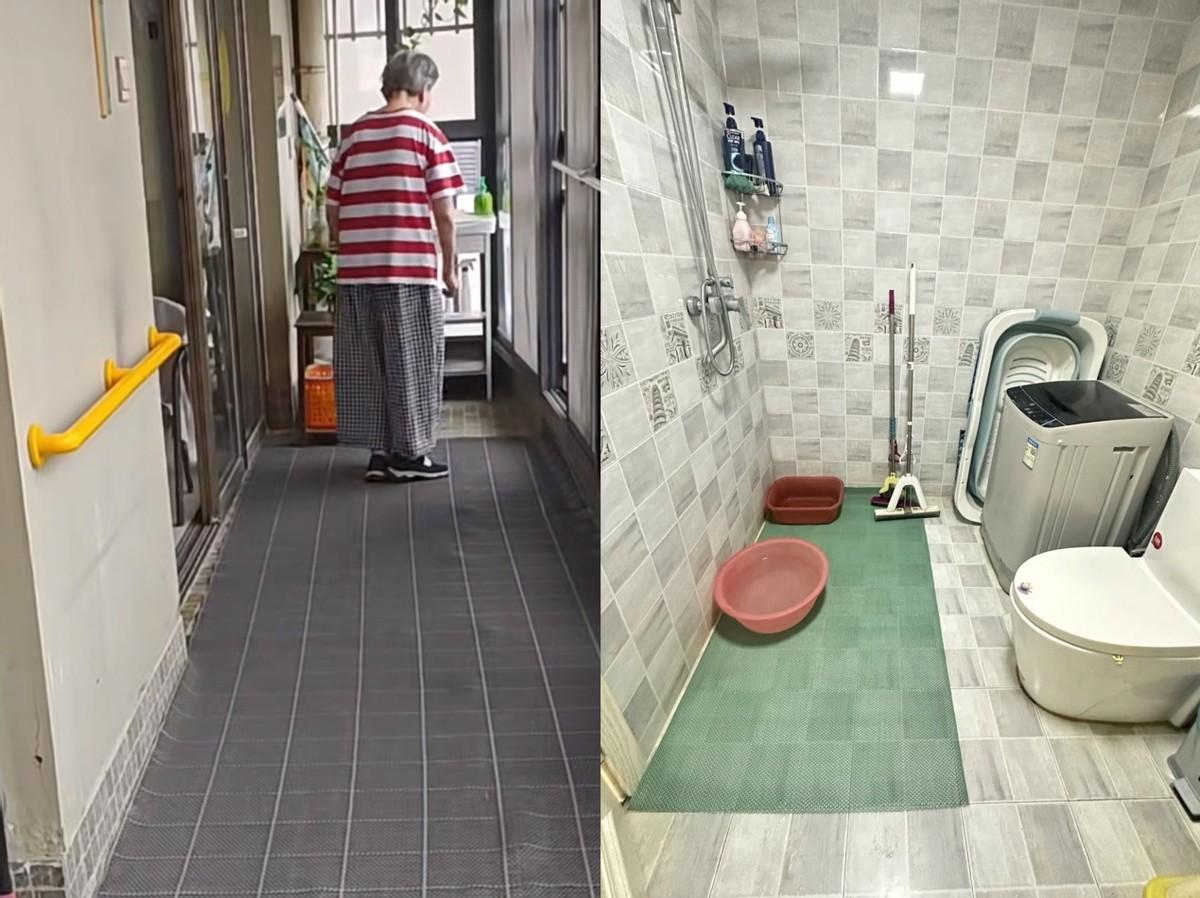 去社區看望獨居老人時,常能看到衛生間鋪着這種防滑墊。可以隨意裁剪,用舊了就換,特別方便安全。