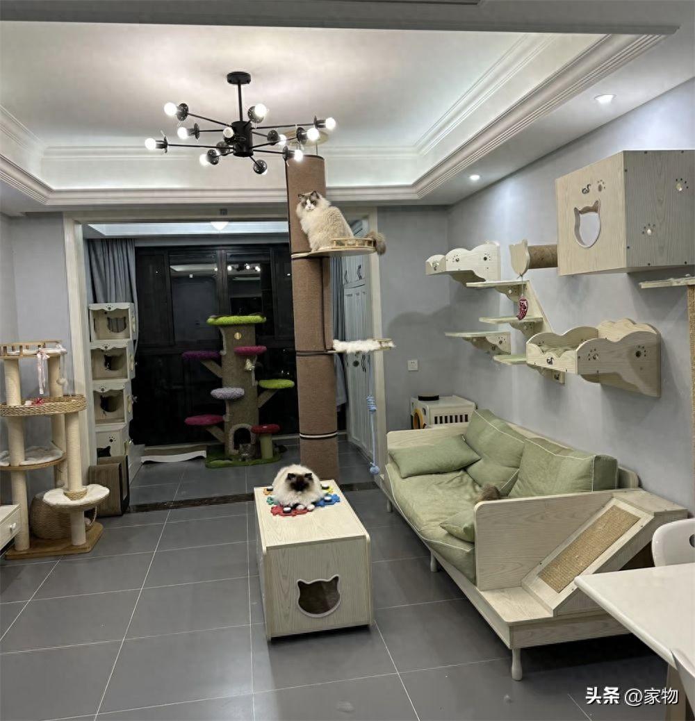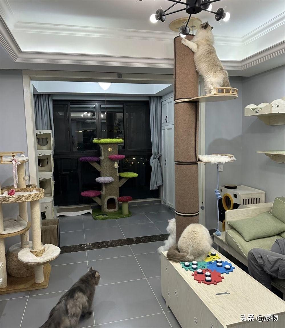 最近我就看到了一位杭州女生(@嚕嚕大口吃肉),家裏養了大大小小5只貓,爲了能讓這些貓咪有充足的活動空間,她乾脆把自己加都改成了一間人貓共住的“貓房”!