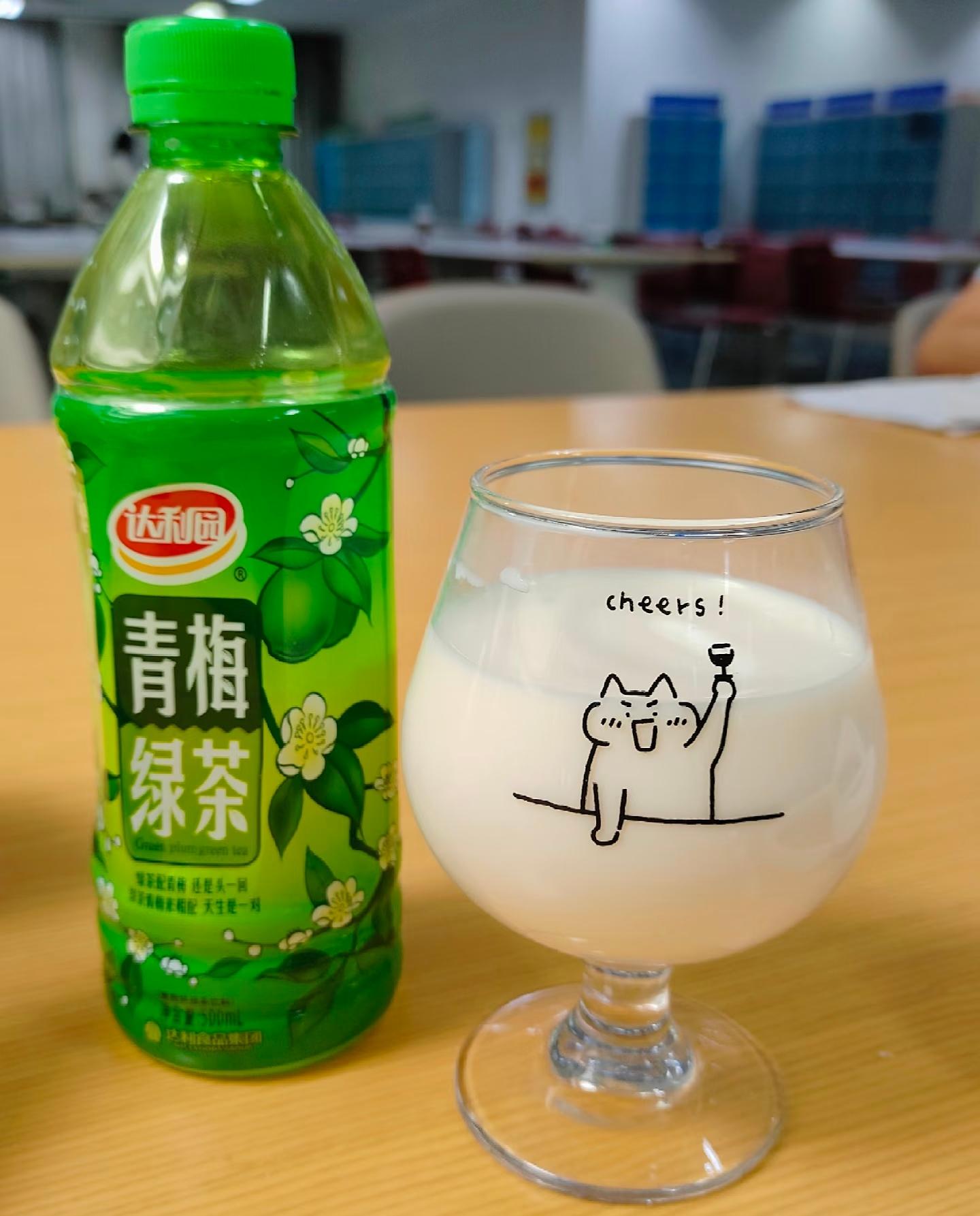 綠茶+牛奶,就是青梅奶綠。雖然好喝愛喝,但有一個bug,好難擰!網友教的,用熱水澆一下瓶蓋;在瓶蓋上墊張紙巾或抹布;用牙。