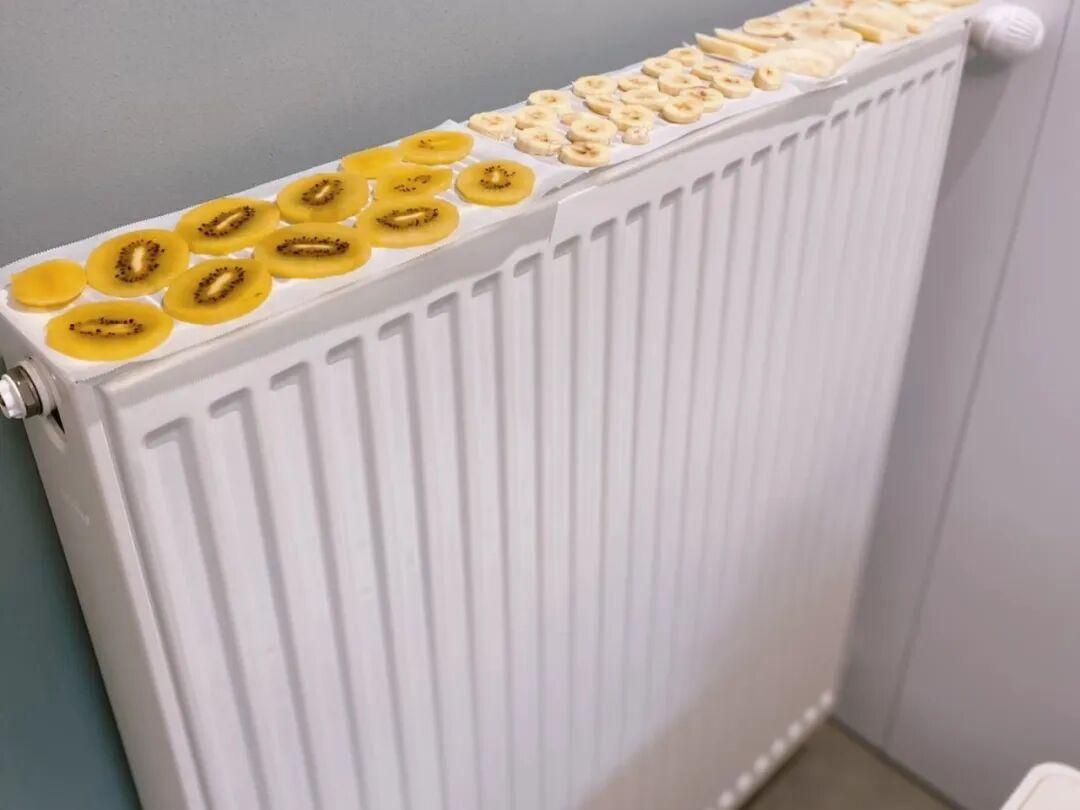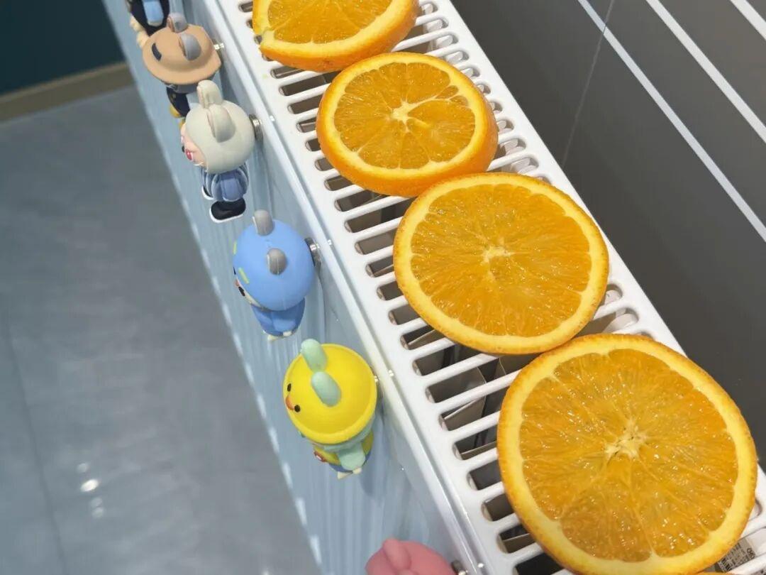 甚至,有些網友更爲的簡單,把暖氣片上面擦乾淨,水果切片以後,直接就放在了暖氣片的上方。