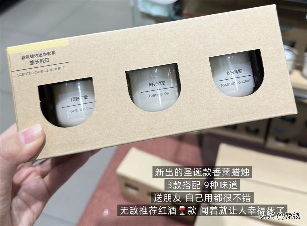 一盒三個,共九種味道的香薰,味道真的是特別好聞,我尤其喜歡裏面這個紅酒味道的,點起來以後有種“微醺”的感覺,當然,這小小的瓶子也很好看,聖誕過年喫飯聚餐的時候放在桌子上,能燃上一整晚,堪稱營造氛圍感的絕佳利器。