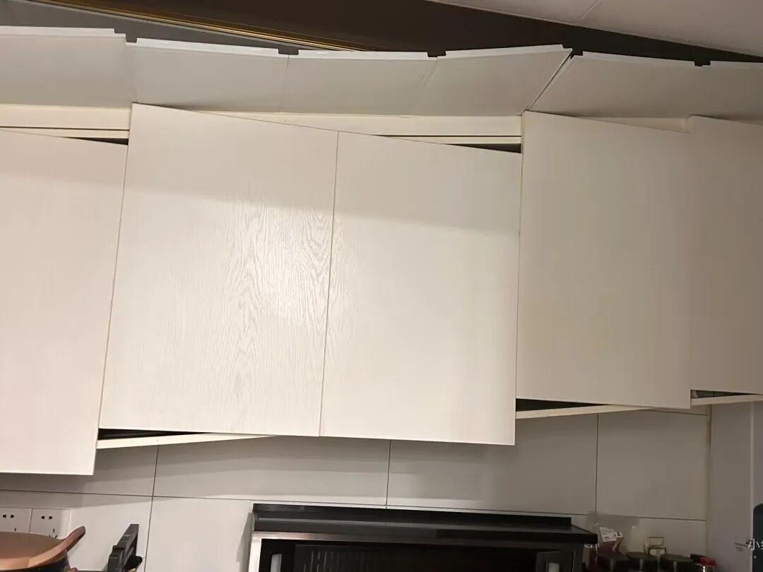 大家可以想想,廚房的吊櫃直接從上面掉下來了,是多麼危險。