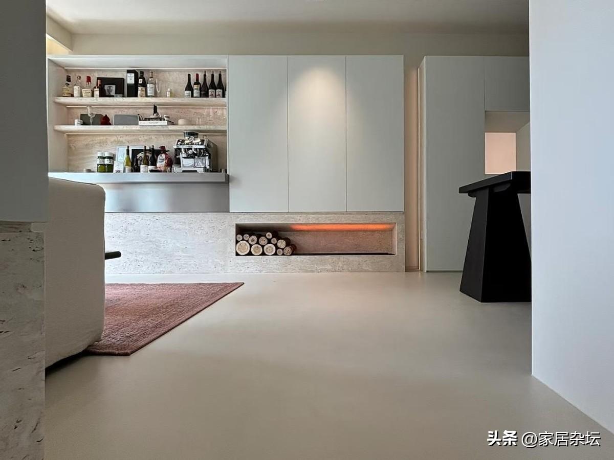 而且,他們摒棄傳統的踢腳線,過門石,還有不同區域的材質分割,整體性渾然一體。