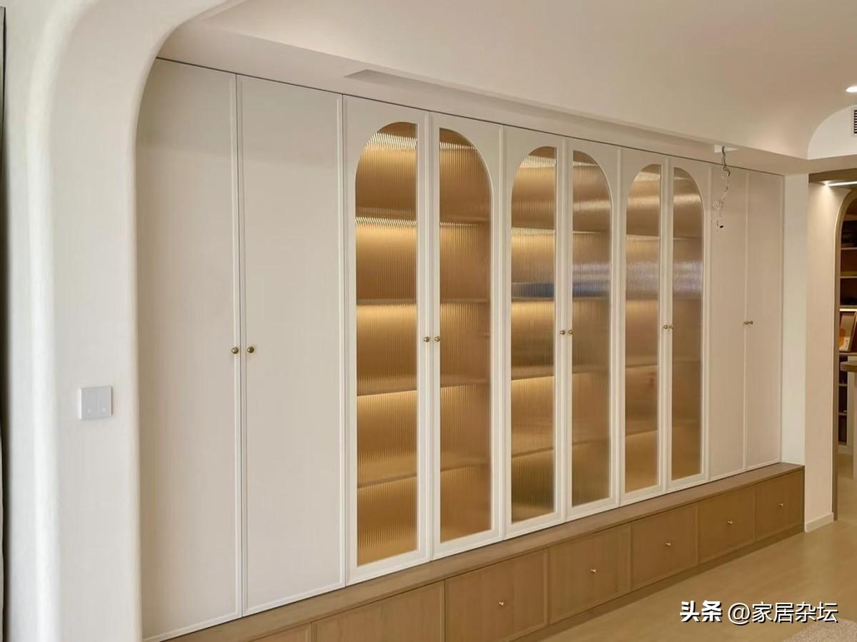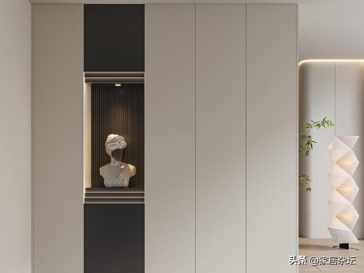 要注意內襯色彩,開放的背板,刷上與櫃門不同的跳色,或者使用木色巖板等不同材質,增強設計層次。另外,在內部嵌入燈帶,能極大提升櫃體的顏值和高級感。