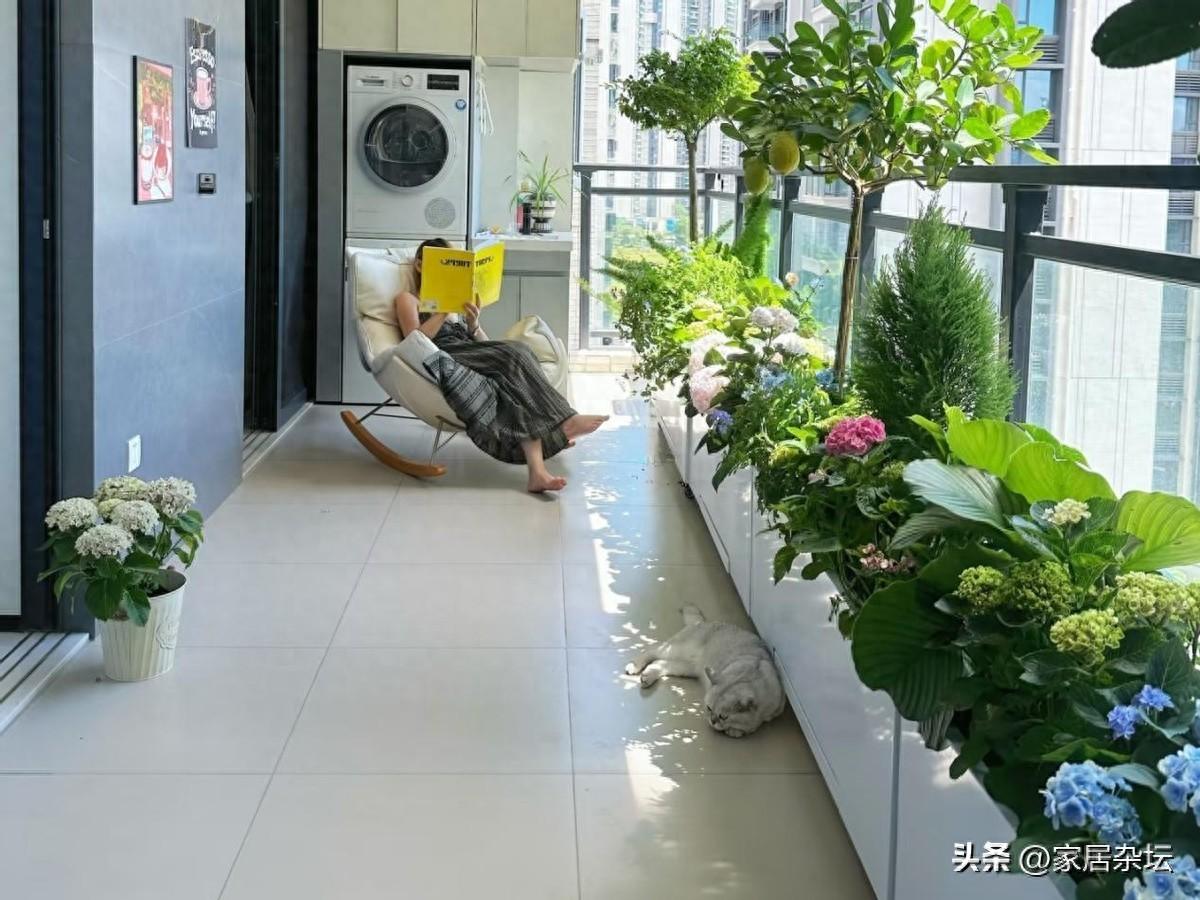 將陽臺晾衣功能轉給了烘乾機,解放了陽臺空間,而且根據自己的喜好,將陽臺改造成迷你花園,閱讀角,咖啡角,冥想區,或者是靜心區。