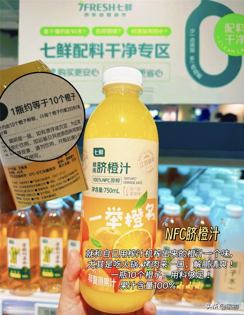 鮮榨臍橙汁和上面說到的醜蘋果汁是一個系列,它也號稱這一瓶裏有10個橙子,裏面還有果肉沉澱,喝前搖一搖,能搖勻沉澱,橙子味超濃,帶一點點微微的酸味,喫飯的時候喝着真的是太解膩了。