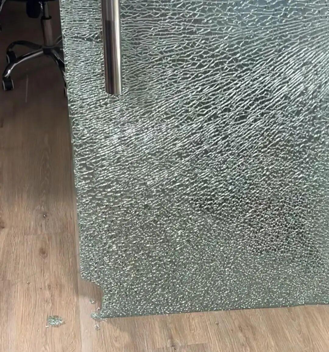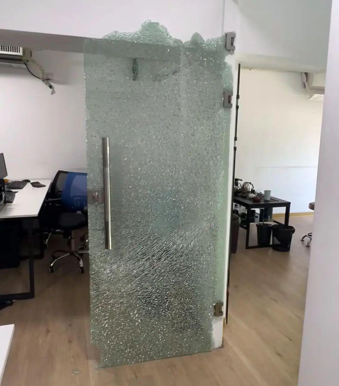 更尷尬的是,臉沒事,鋼化玻璃們卻碎了。