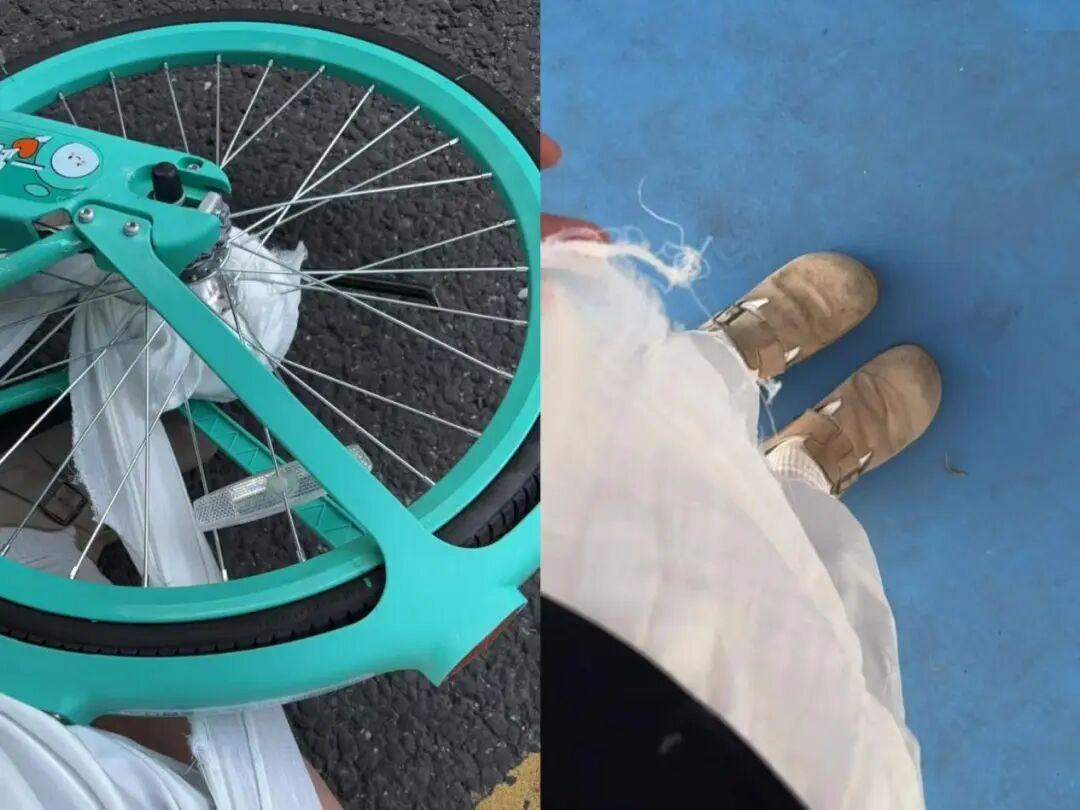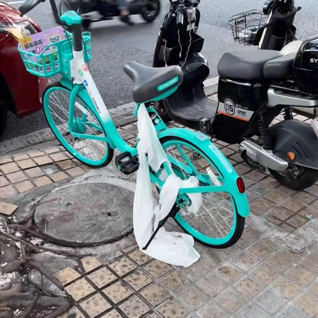 可是自行車裏面卷的取不出來,無法想象下一個騎共享單車的人看到這種情形,是何種的尷尬。