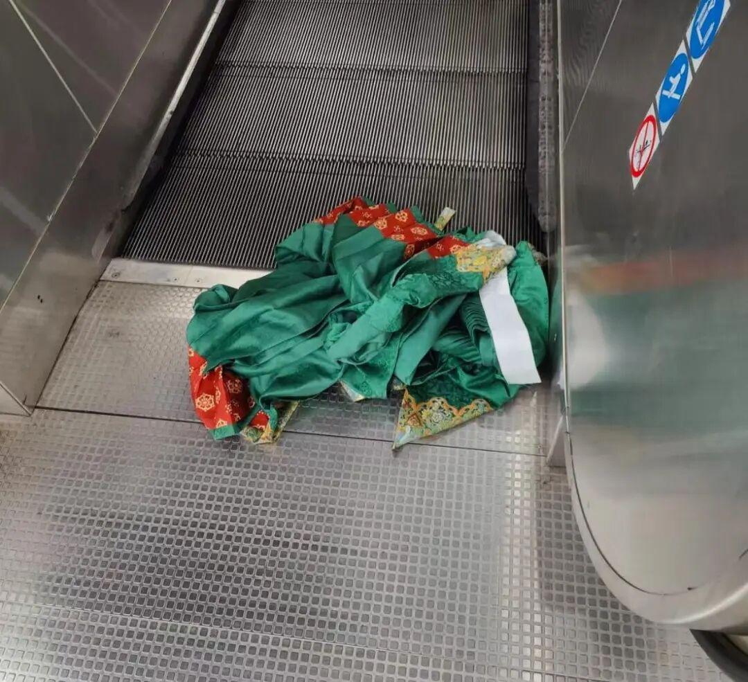 最後來了好幾個大姨幫忙才把我的裙子“拔”斷,把我解救了。