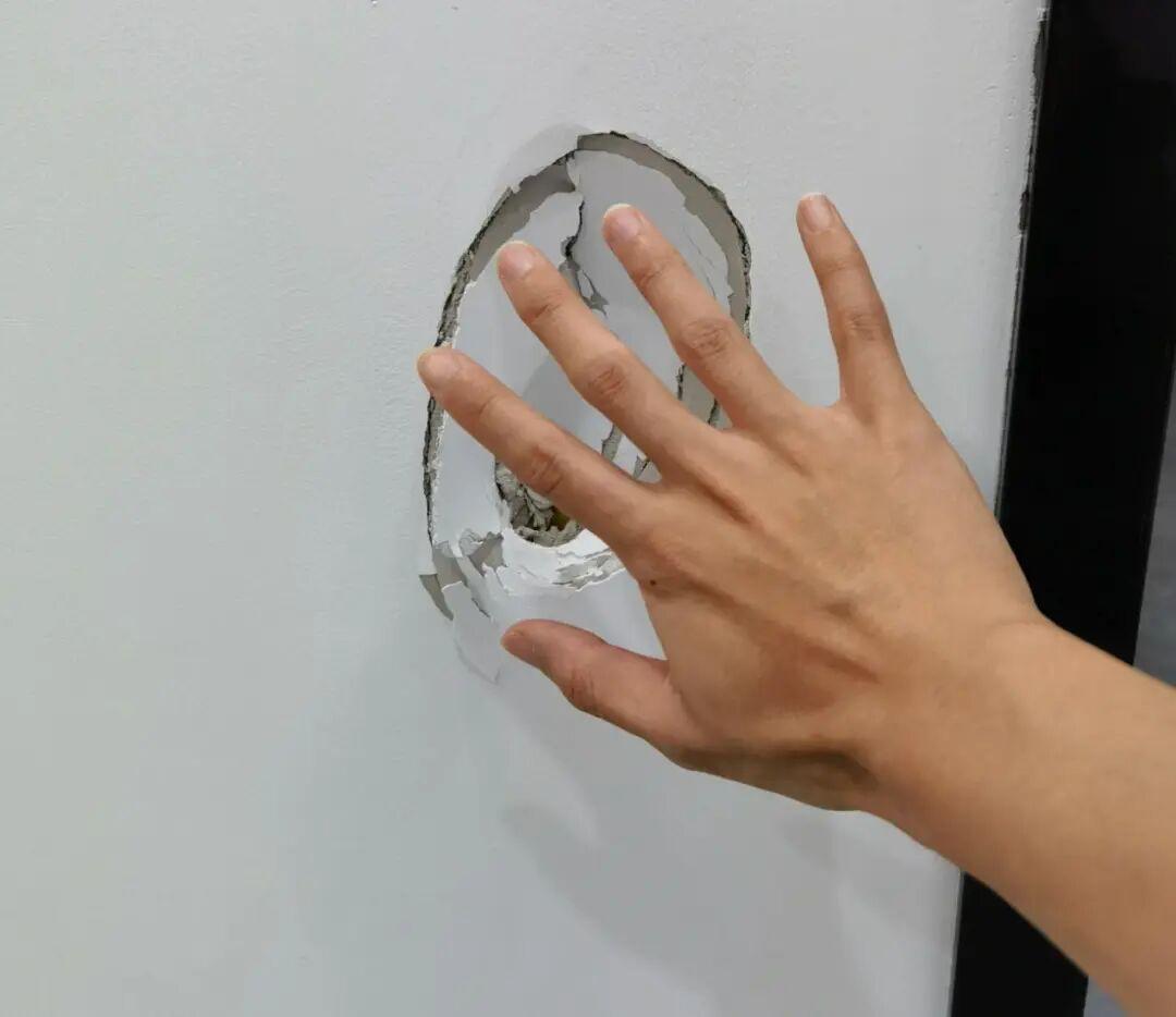 尷尬的是我的臉,在牆上撞出了一個完整的坑!