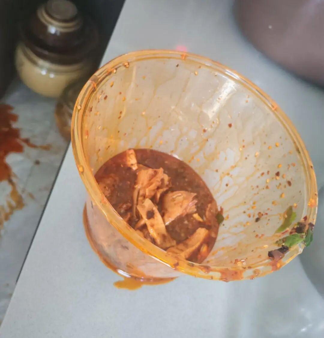 手一滑整盆紅油小龍蝦‘砰’地一聲
