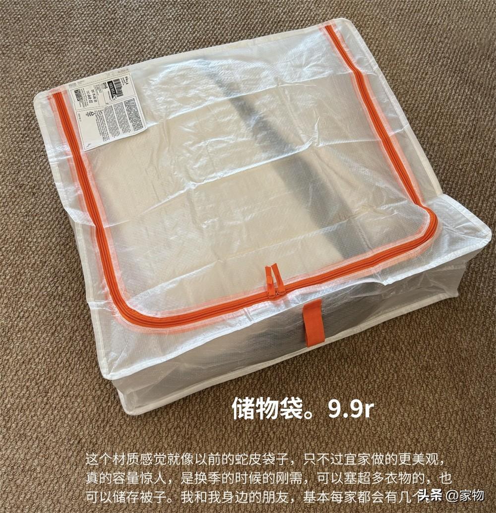 這個就不多說了,相當於是以前的蛇皮袋PLUS,本身材質足夠耐用,拉鍊又是一抹亮橙色,簡單好看、便宜實用,我覺得已經做到了一個換季收納袋最該做到的,九塊九,比雜牌還便宜,就問還有誰!
